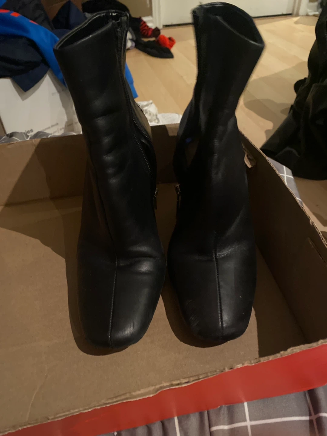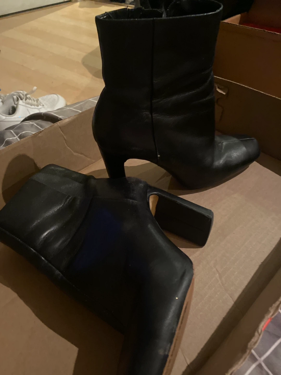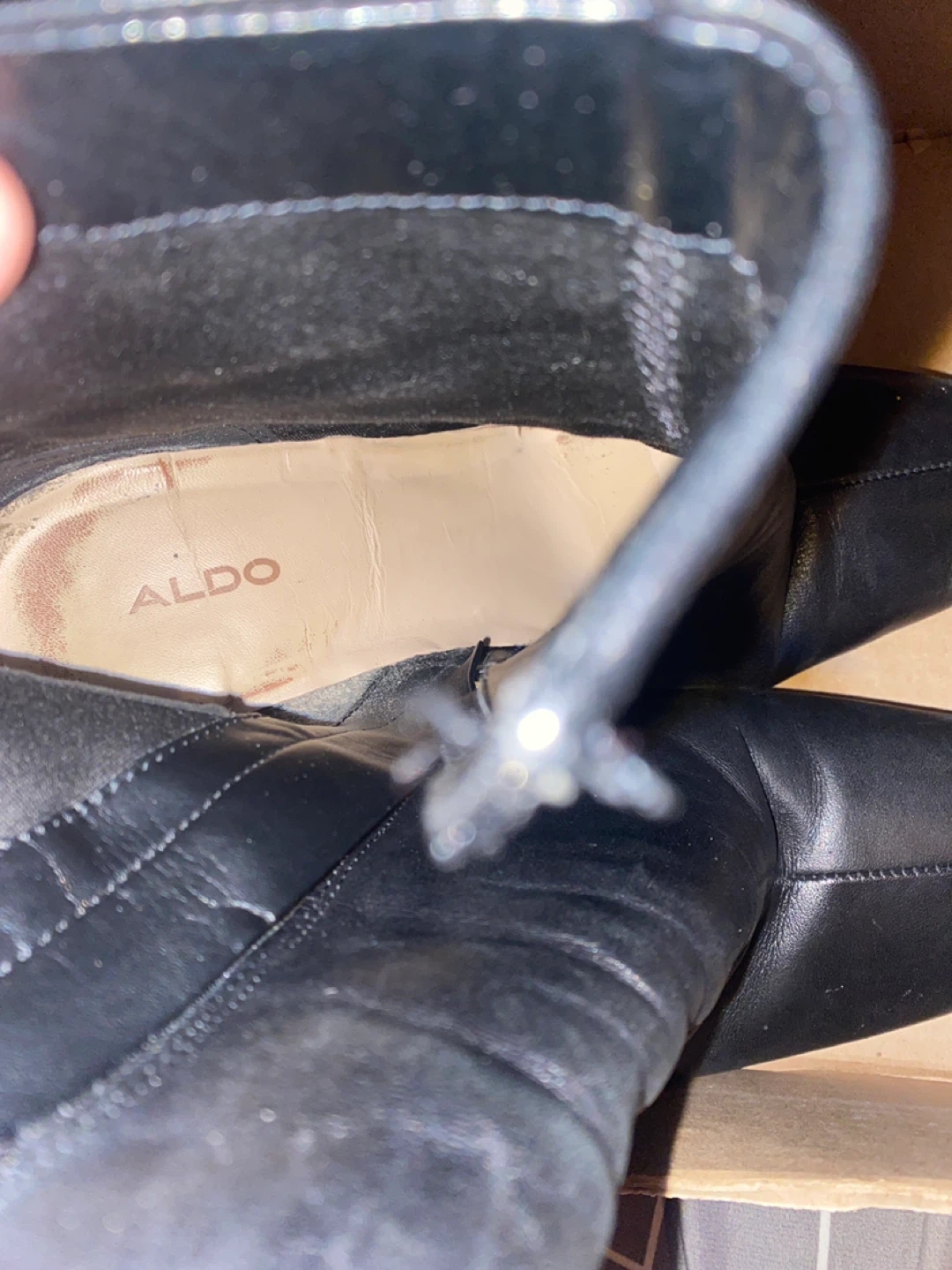 Selling a pair of Aldo black leather heeled boots in size 8. They're in good condition and ready for a new owner! Great condition well kept worn occasionally
