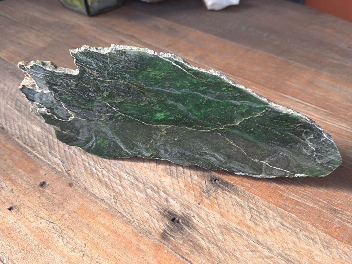 Selling a decorative green jade grade B. It has a been polished by hand and has unique look. Would be a great addition to your home decor or collection! It's in good condition and ready for a new space