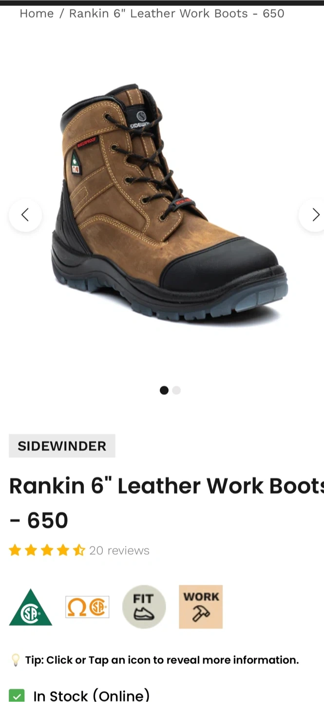 Sidewinder Steel Toe Work Boots - Size 8 (41)