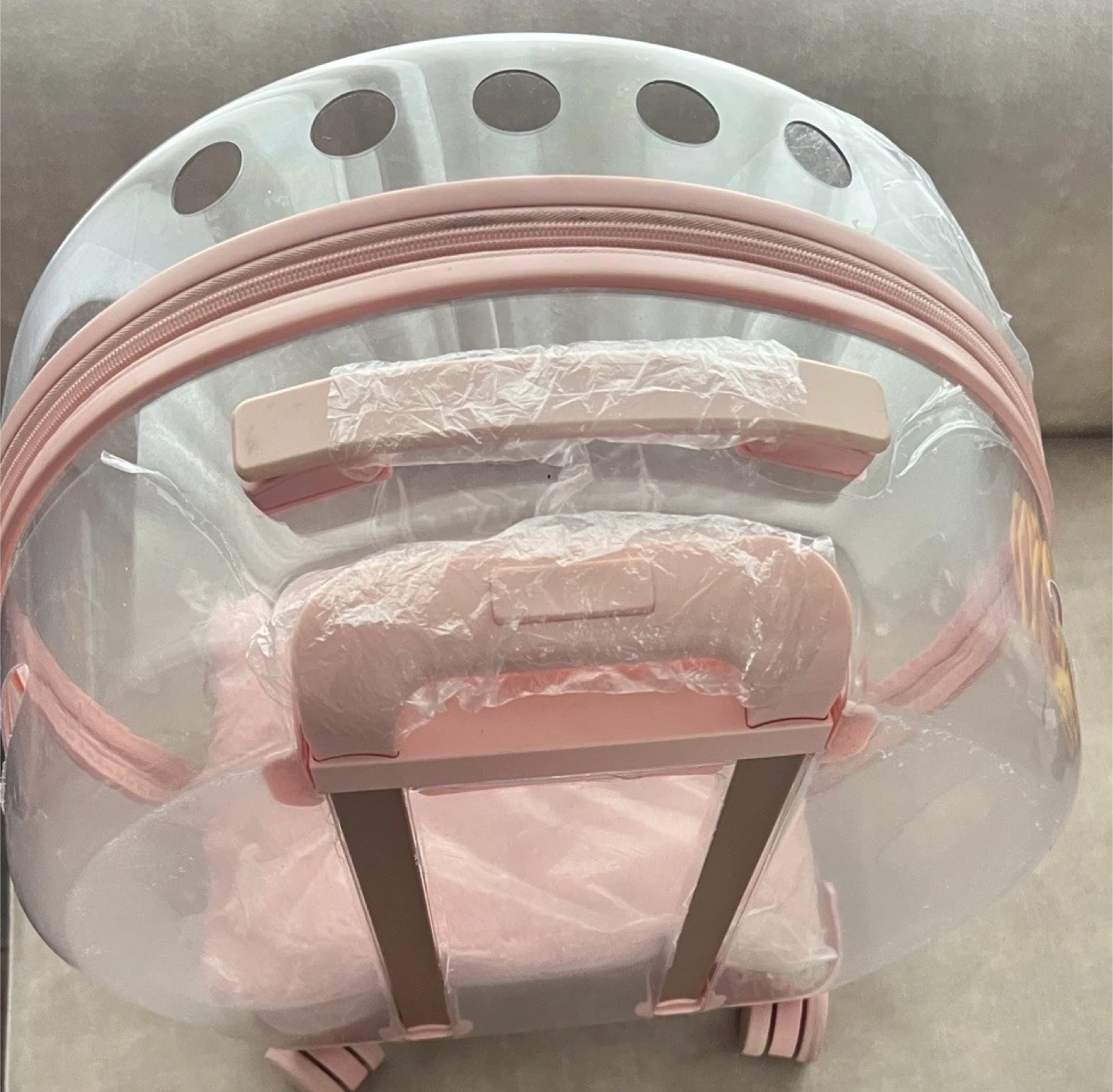 VETRESKA Transparent Pet Carrier Rolling Pink