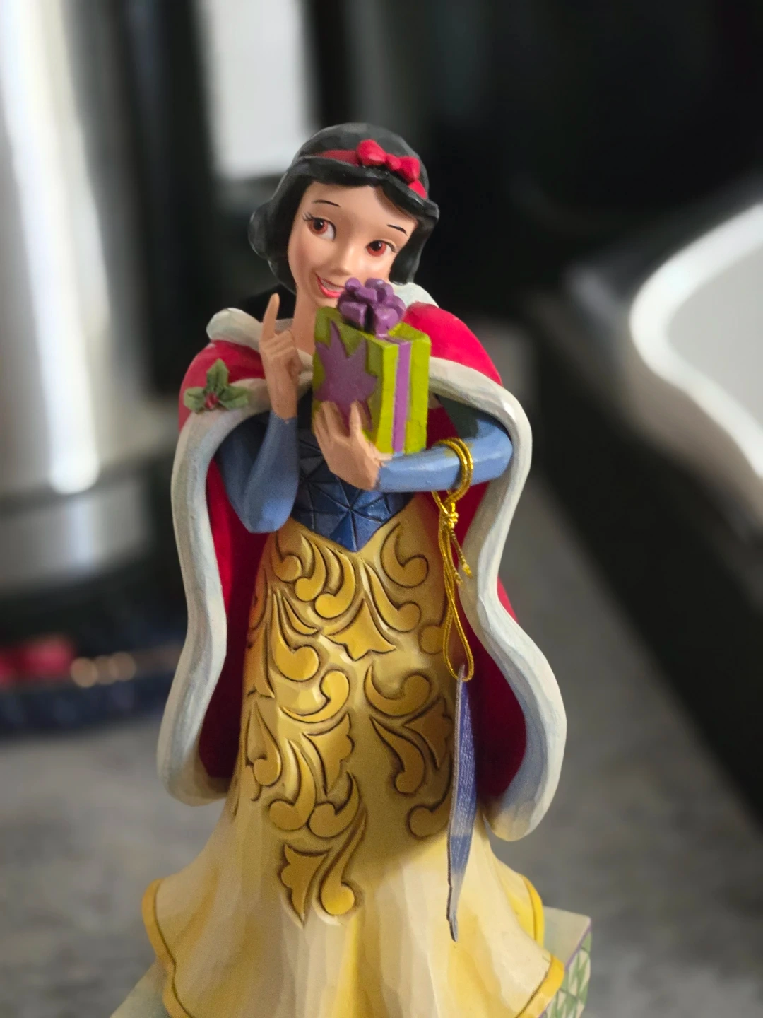 This charming Jim Shore figurine features Snow White holding a festive gift. It's crafted with his signature folk art style. Great for Disney collectors!