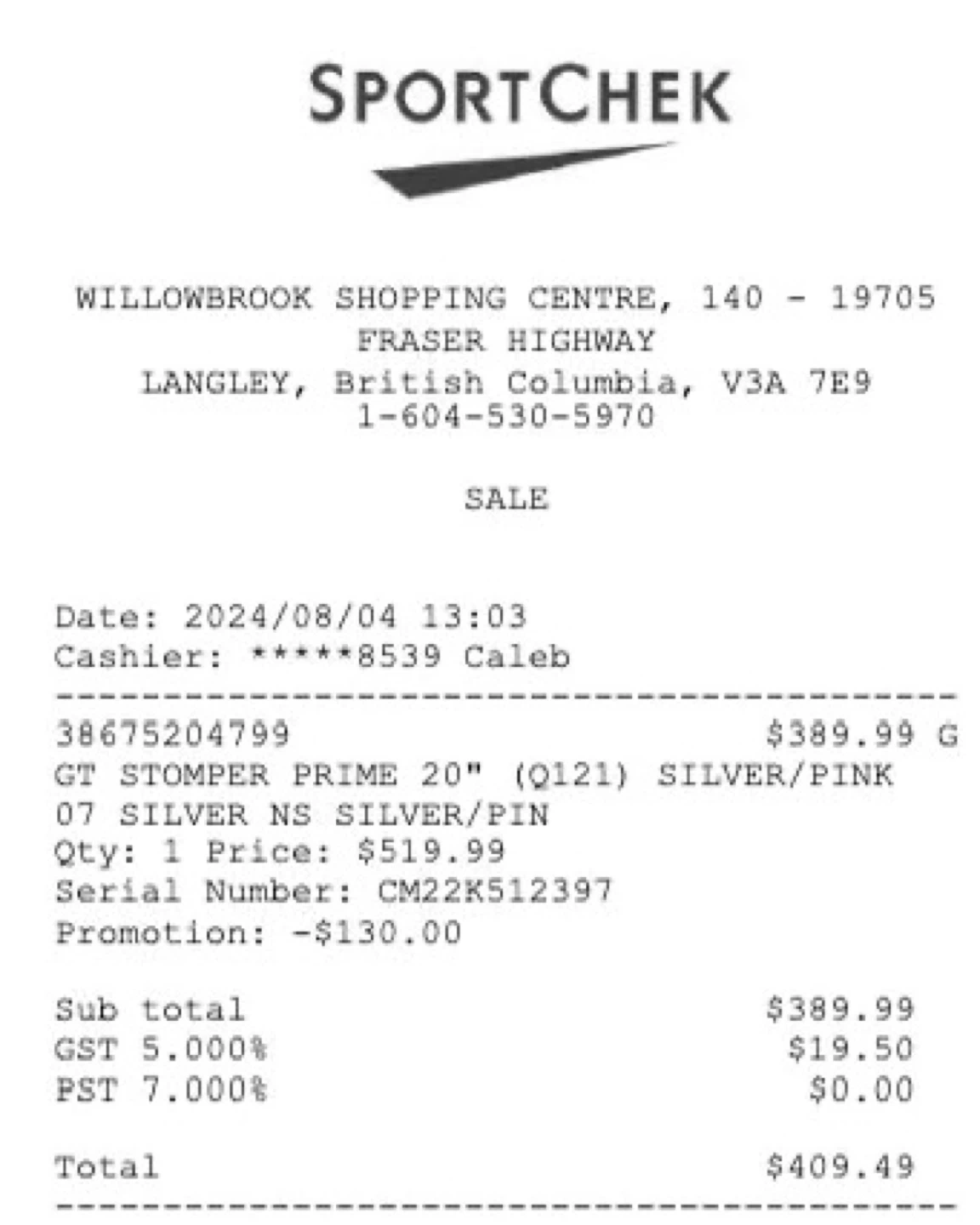 Selling a GT Stomper kids mountain 20 inch bike purchased from SportChek.
