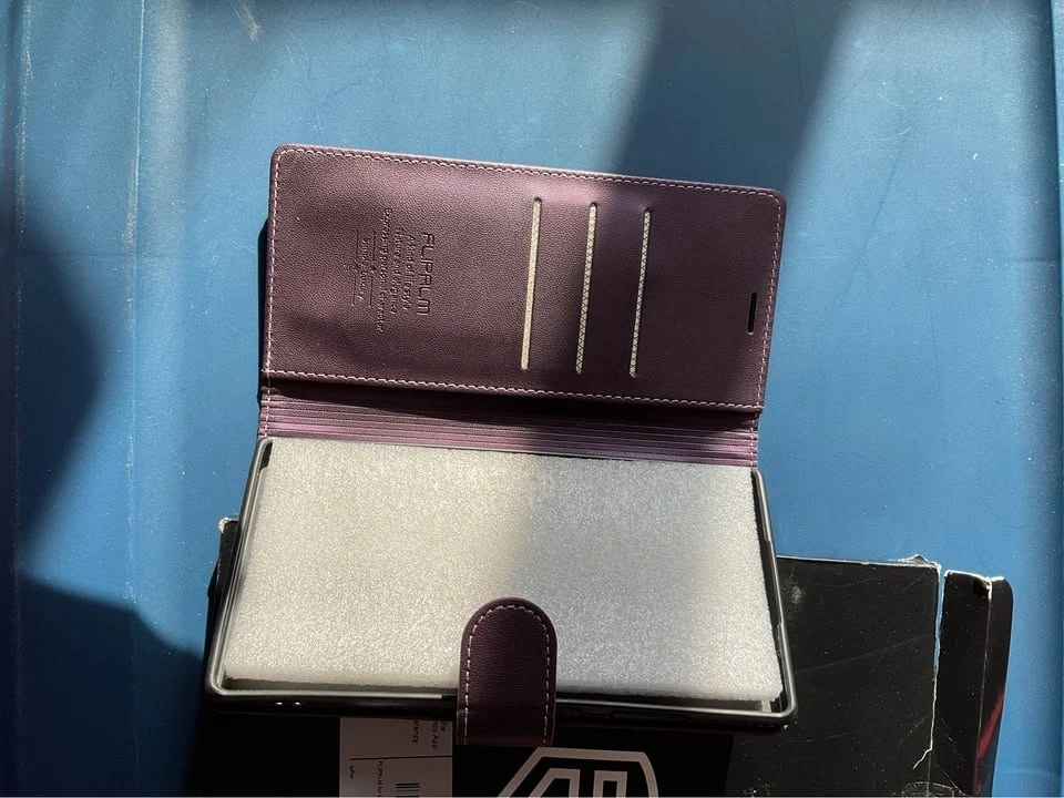 New FLIPALM wallet case for Samsung Galaxy S24 Ultra. Purple color. Has card slots inside. Still in original box, never used.