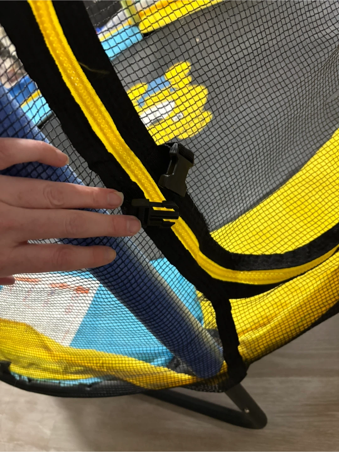 This colourful trampoline is great for little ones. It has a fun bear design on the mat and a safety net enclosure. It's perfect for indoor or outdoor bouncing fun!