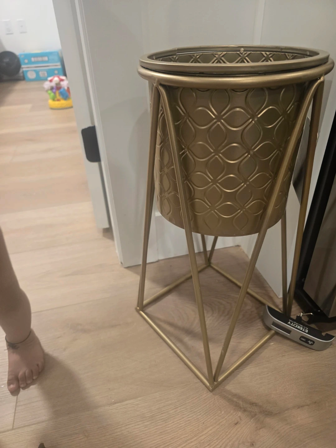 Gold Metal Plant Stand with Decorative Pattern