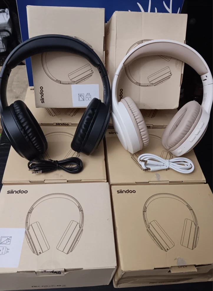 Siindoo wireless over-ear High-quality Bluetooth Headphones with Audio cord Great sound quality, loud bass sound proof comfortable fit. Perfect for everyday use or travel. Available in White and black