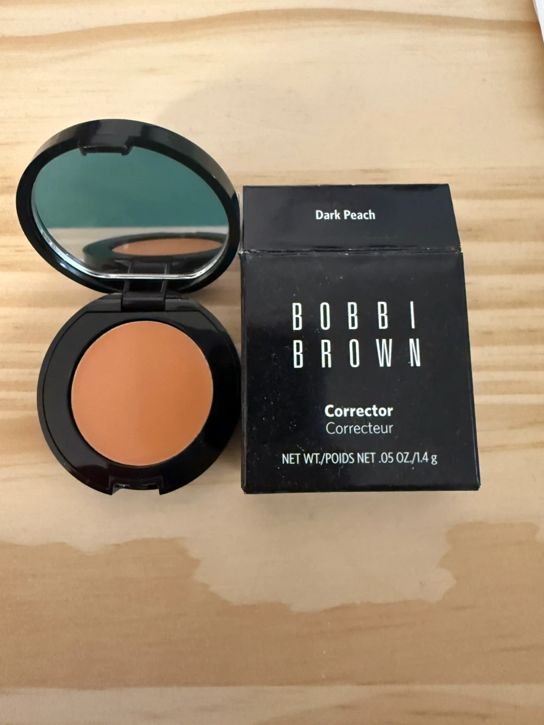 Bobbi Brown Corrector in the shade Dark Peach. Net weight is .05 oz / 1.4 g. It comes in a compact with a mirror.