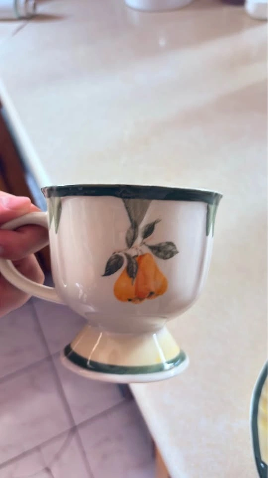 Antique Peaches bowl and cup set. Available for pickup near East 49. Cup has a diameter of 10cm, bowl has a diameter of 20cm. Price is firm. Selling 4 sets. Cannot be sold individually, must be sold all together.
