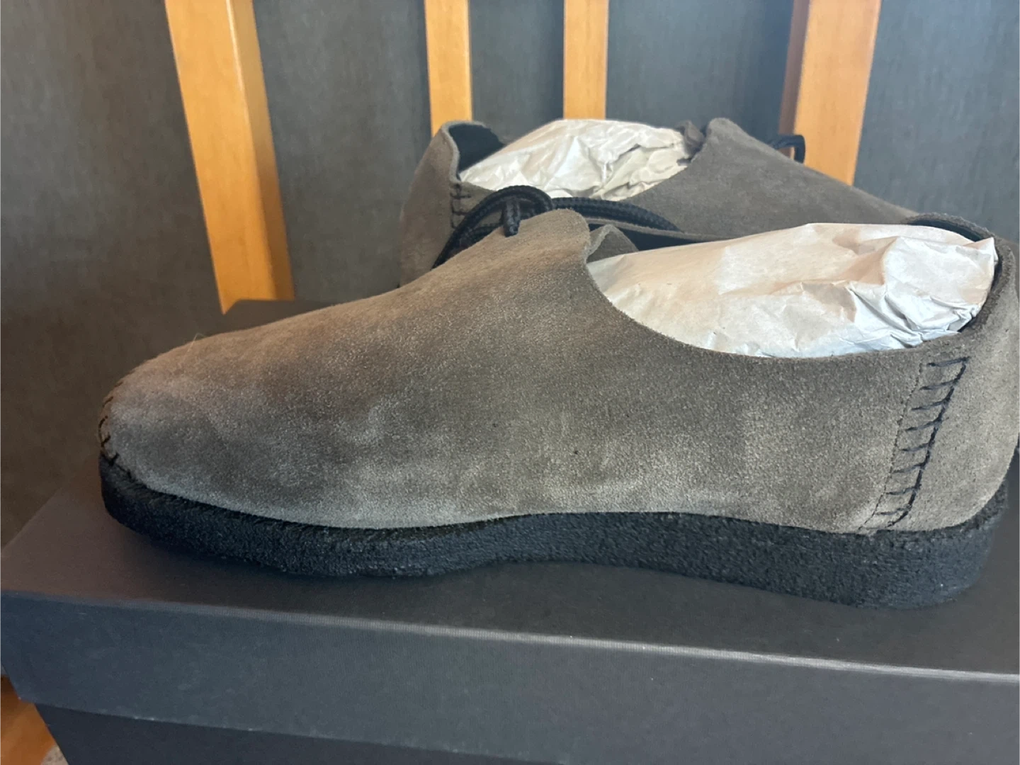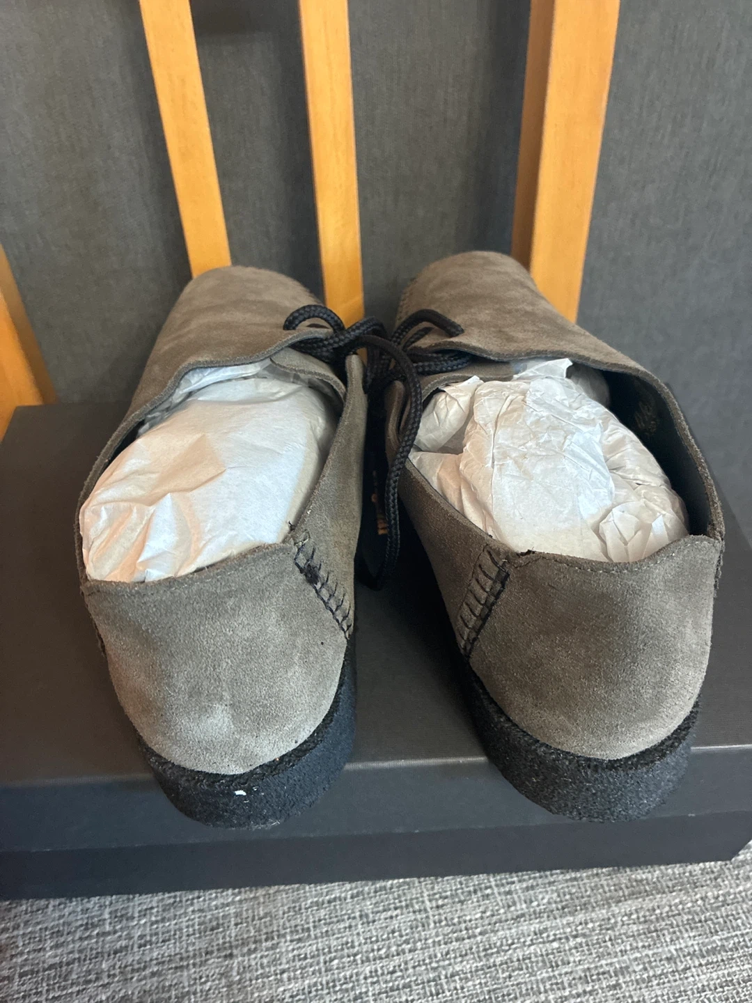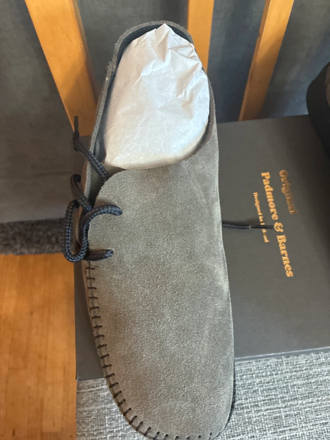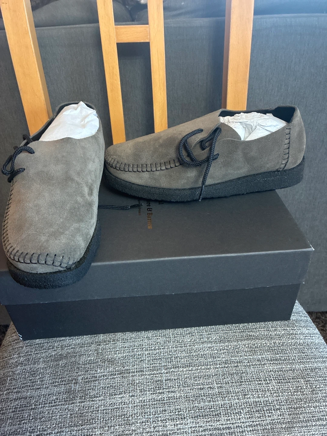 Selling a pair of Padmore & Barnes shoes in olive suede! They are brand new in the box size Men’s 8 Women’s 9.5