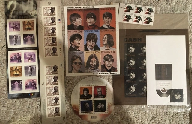 Offering a curated collection of commemorative stamps, perfect for enthusiasts and collectors! This assortment includes stamps featuring John Lennon, Johnny Cash, and notable figures from Black History Month, all in very good condition. Included are: John Lennon 1940-1980 Stamps, Johnny Cash Music Icons First Day of Issue Nashville June 5, 2013, and Black History Month Stamps. I estimate the value to be around $40 based on similar listings. Open to offers! If you're reading this, the stamps are still available.
