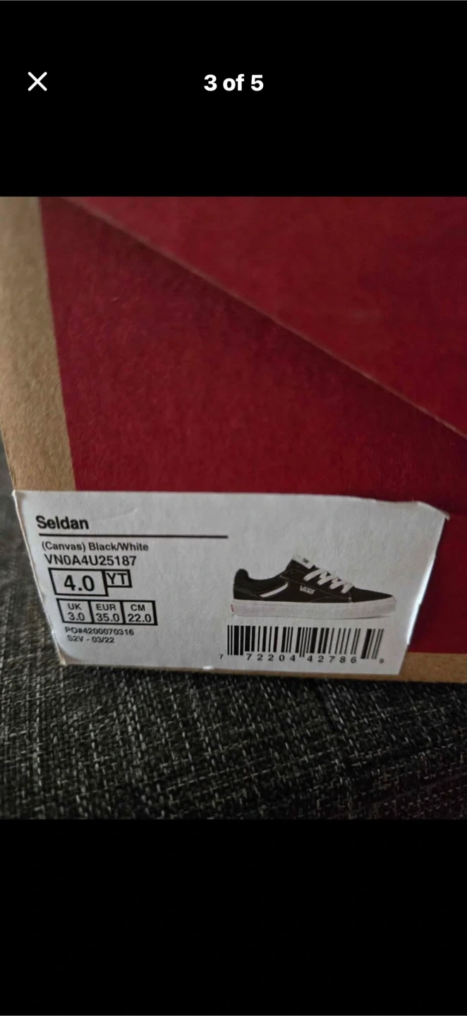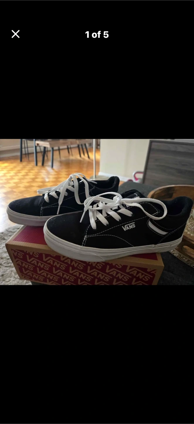 Buy & SellVans Selden Canvas Sneakers - Black/WhiteVans Selden Canvas Sneakers - Black/White$15Vans Selden sneakers in black and white canvas. Size YOUTH 4.0. Original box included.ConditionGoodWHERE TO MEETCheck LocationView MapSELLERverifiedValeriaCooksville600 reviews0 chats·0 favorites·4 viewsSEND CHAT TO SELLERHi Valeria! I’m interested in your listing.Hi Valeria! I’m interested in your listing.Get the Karrot app to chatSign In to chat