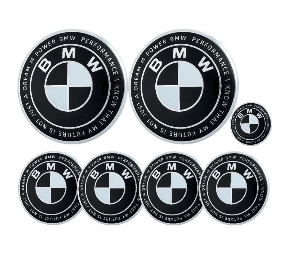 7 Piece Set BMW Heritage Black/White Emblems