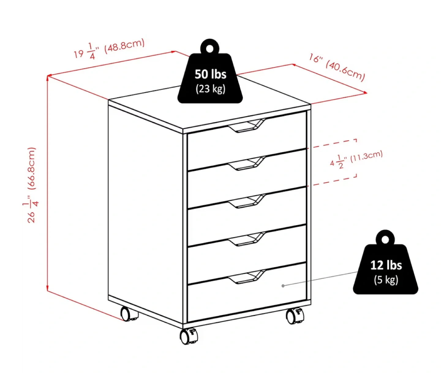 • 48.8 cm (W) x 40.6 cm (D) x 66.8 cm (H)