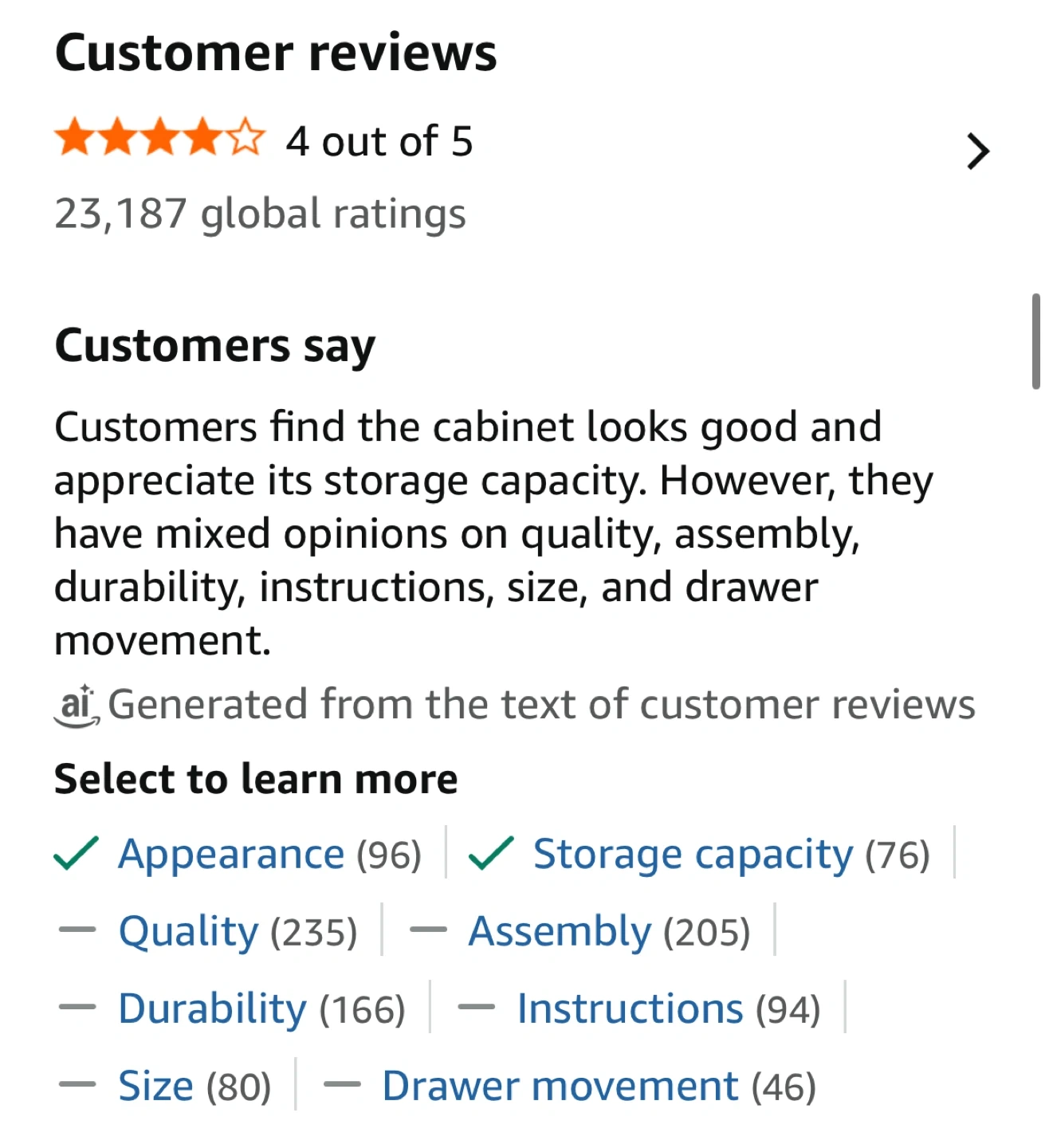 The cabinet is made of engineered wood and provides convenient storage while taking up minimal space.