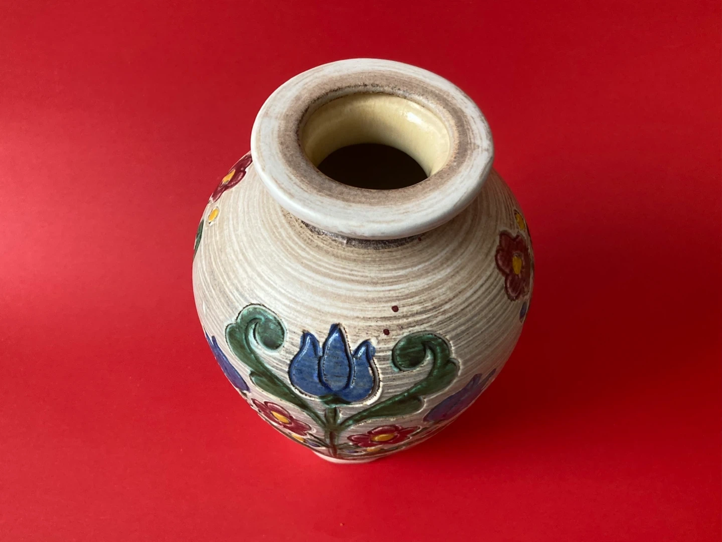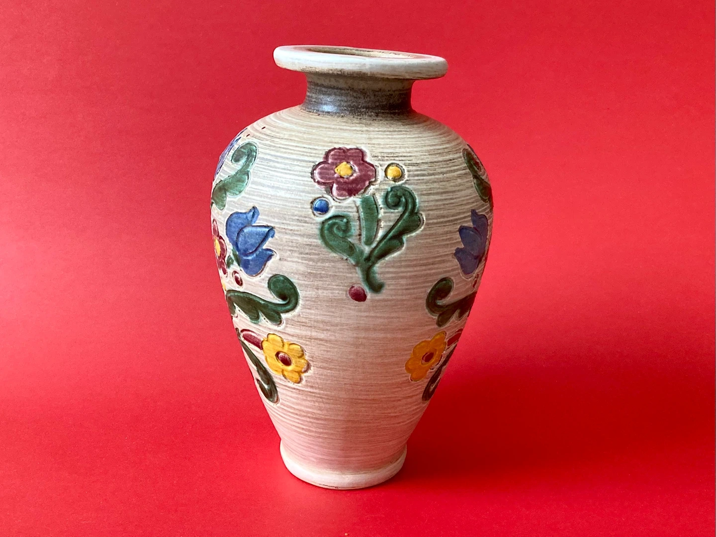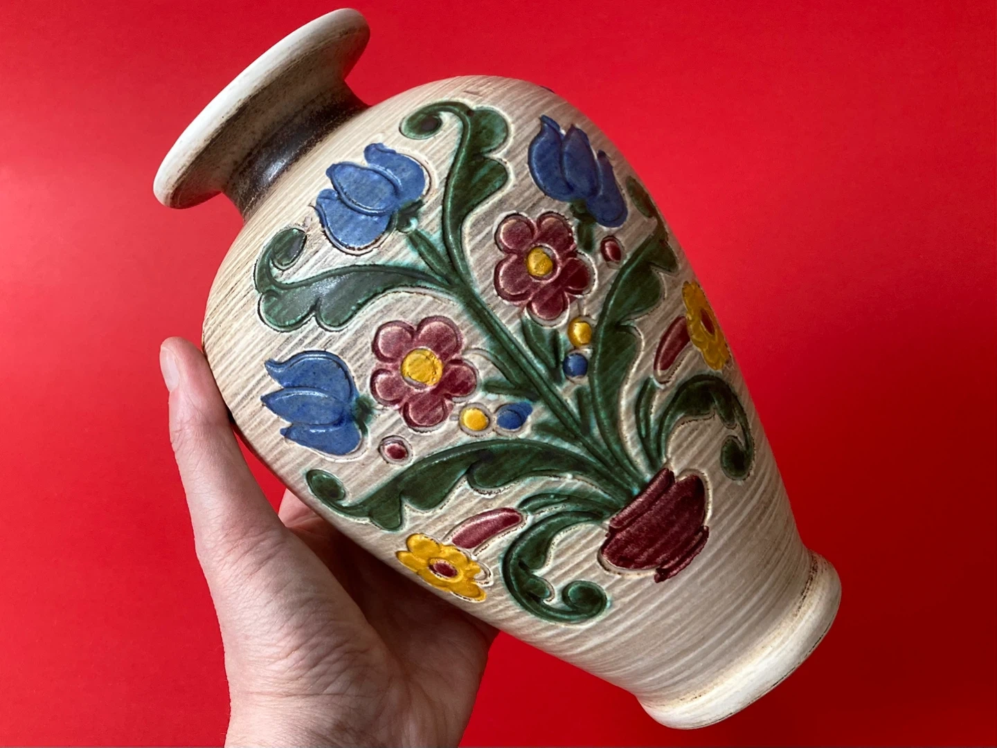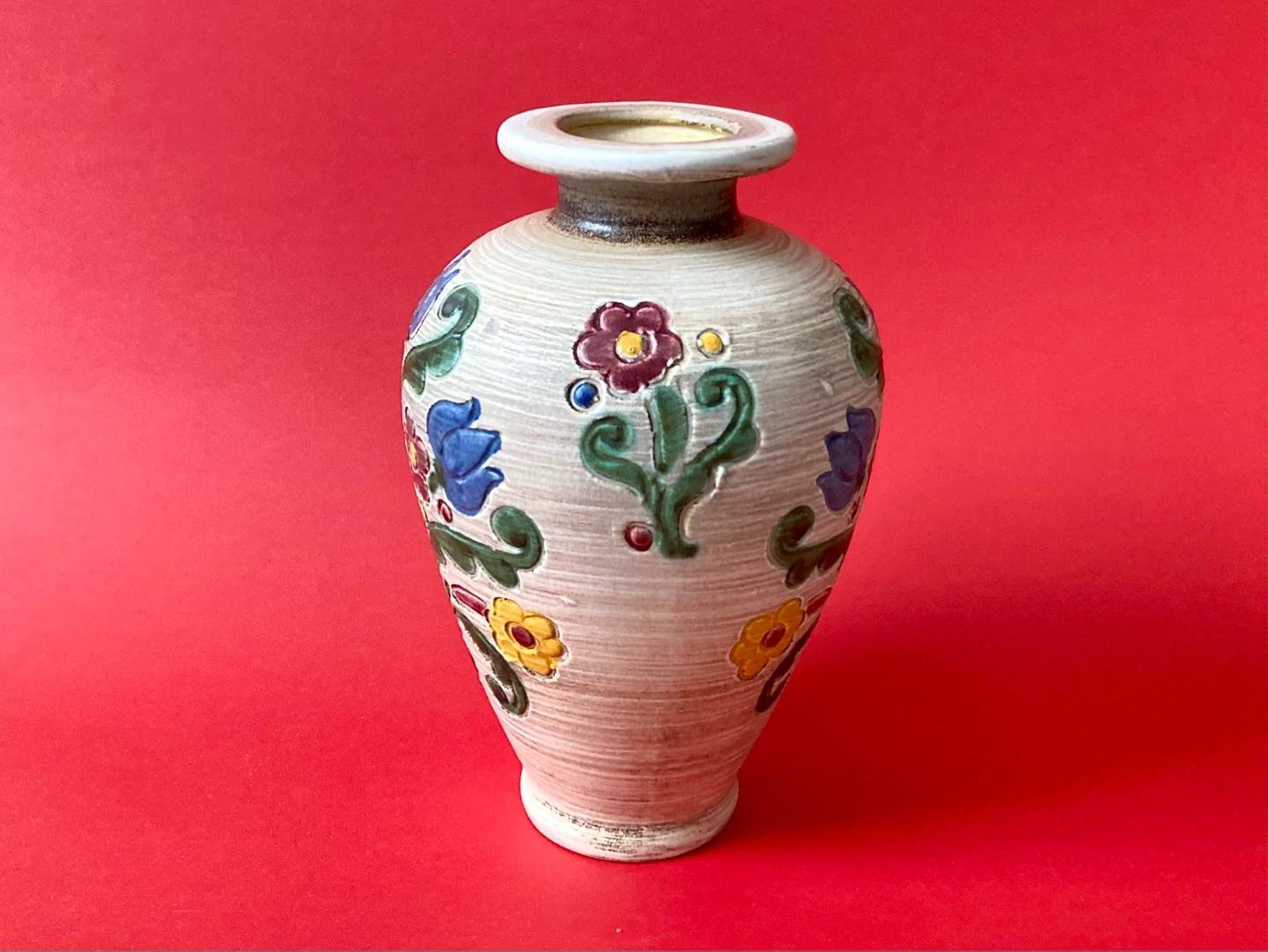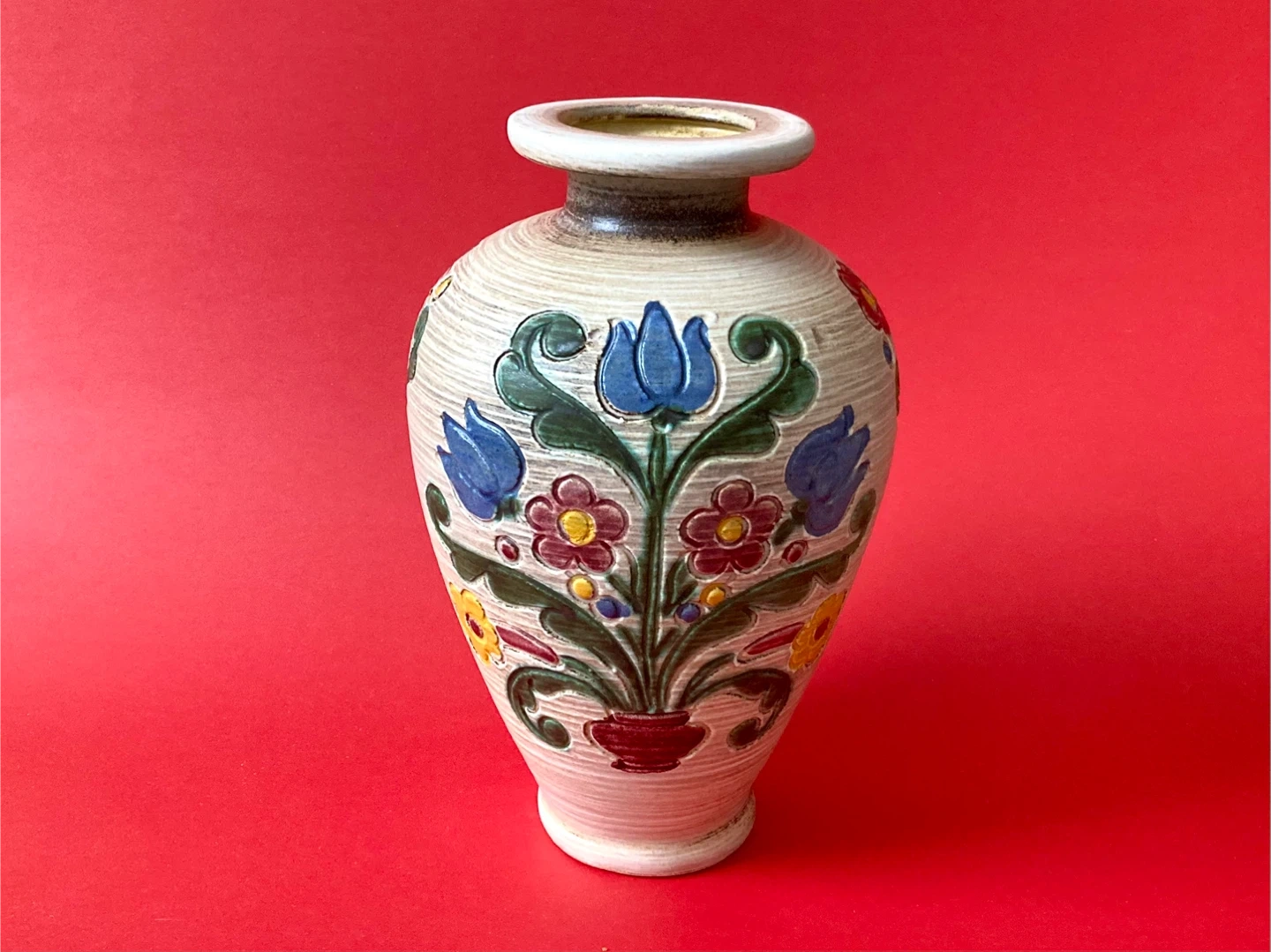 Vintage Gmundner Keramik Austrian pottery hand-painted vase dated mid-century