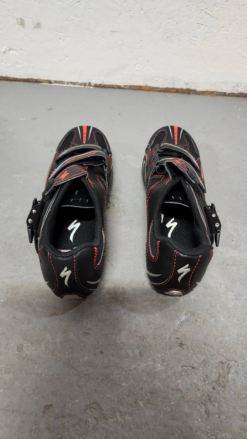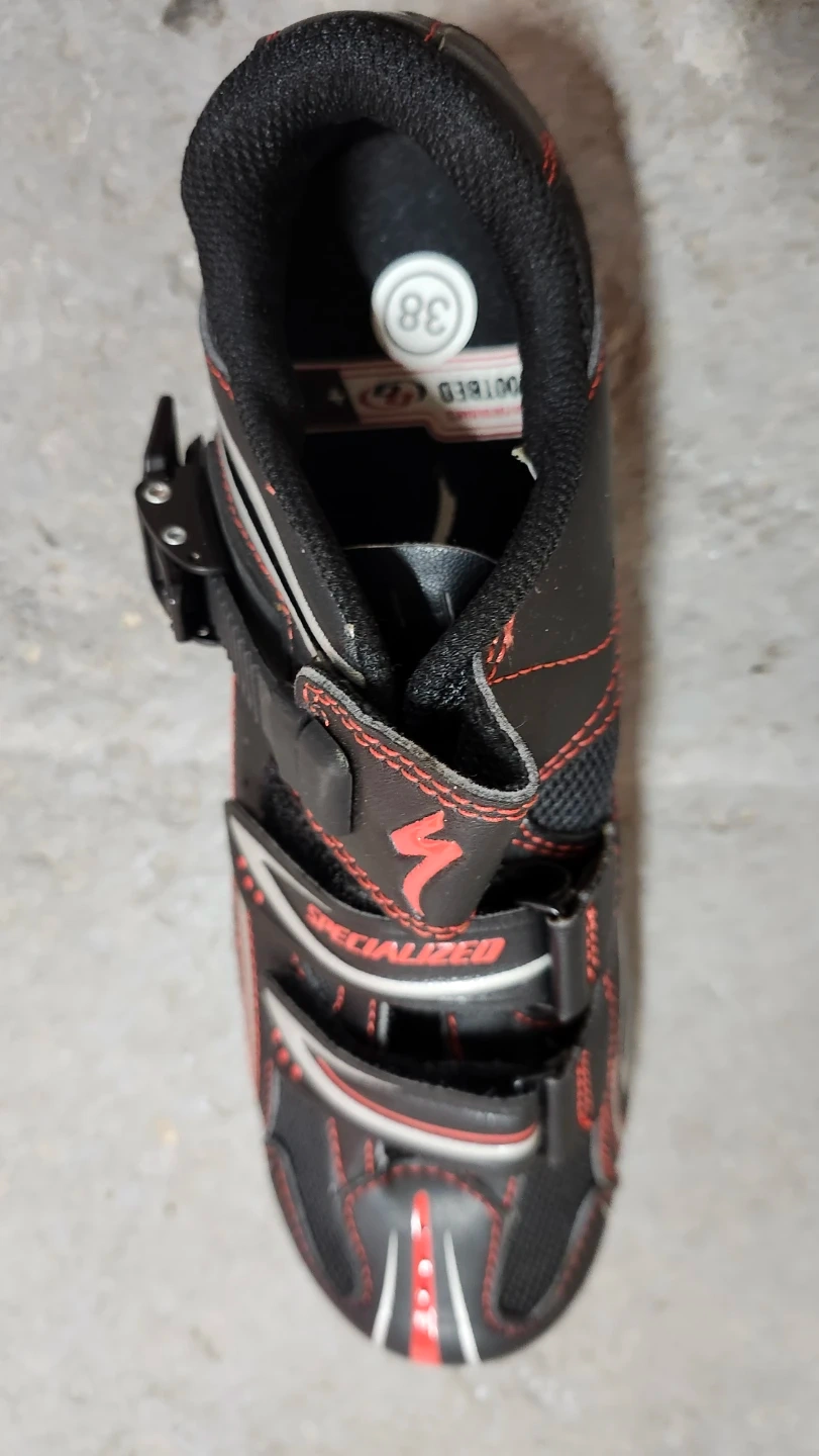 Specialized Elite Rd cycling shoes in black. These shoes are size 38 EU. They feature a three-strap ratchet closure system for a secure fit. Brand new in the box. They were bought thinking that my 38 size would work, they fit a bit too small for me.