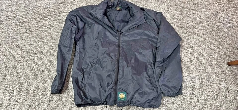 Lightweight Northern Escape black windbreaker jacket. Has full zip front and a comfy nylon shell with PVC backing. Lining is also nylon. Size XL.