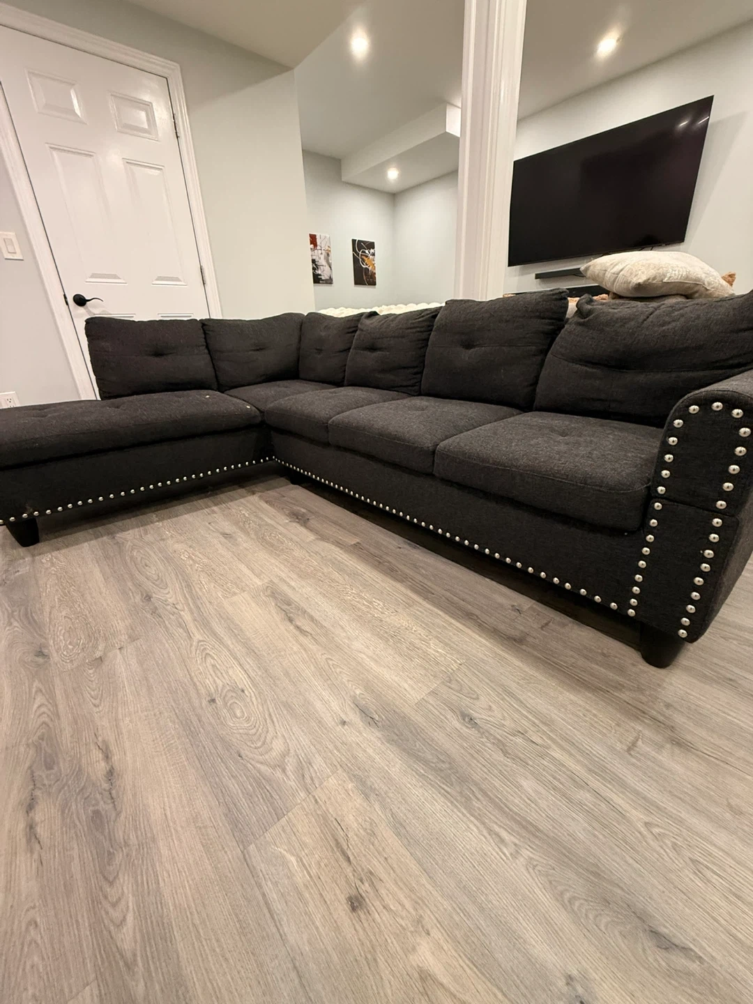 Dark Grey Sectional Sofa with Chaise