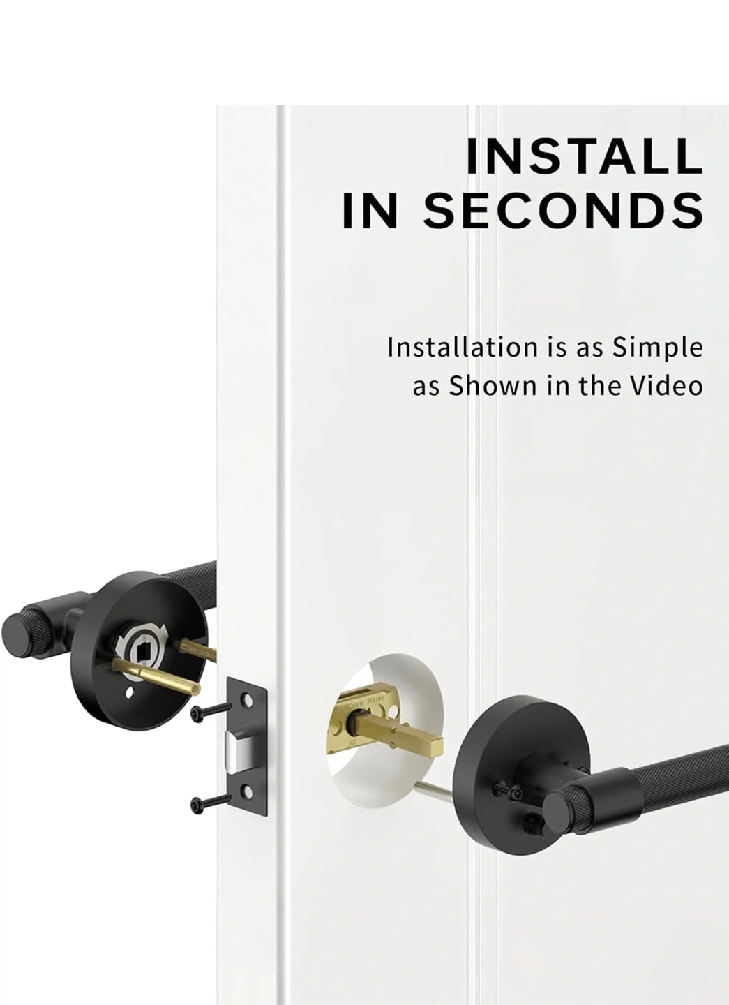 Asidrama Privacy Black Knurled Door Handles, Door Lever with Door Knobs Indoor for Bedroom or Bathroom, Heavy Duty Matter Black Door Handles Interior with Locks for Left Right Sided Doors