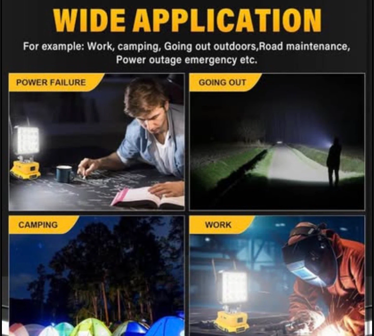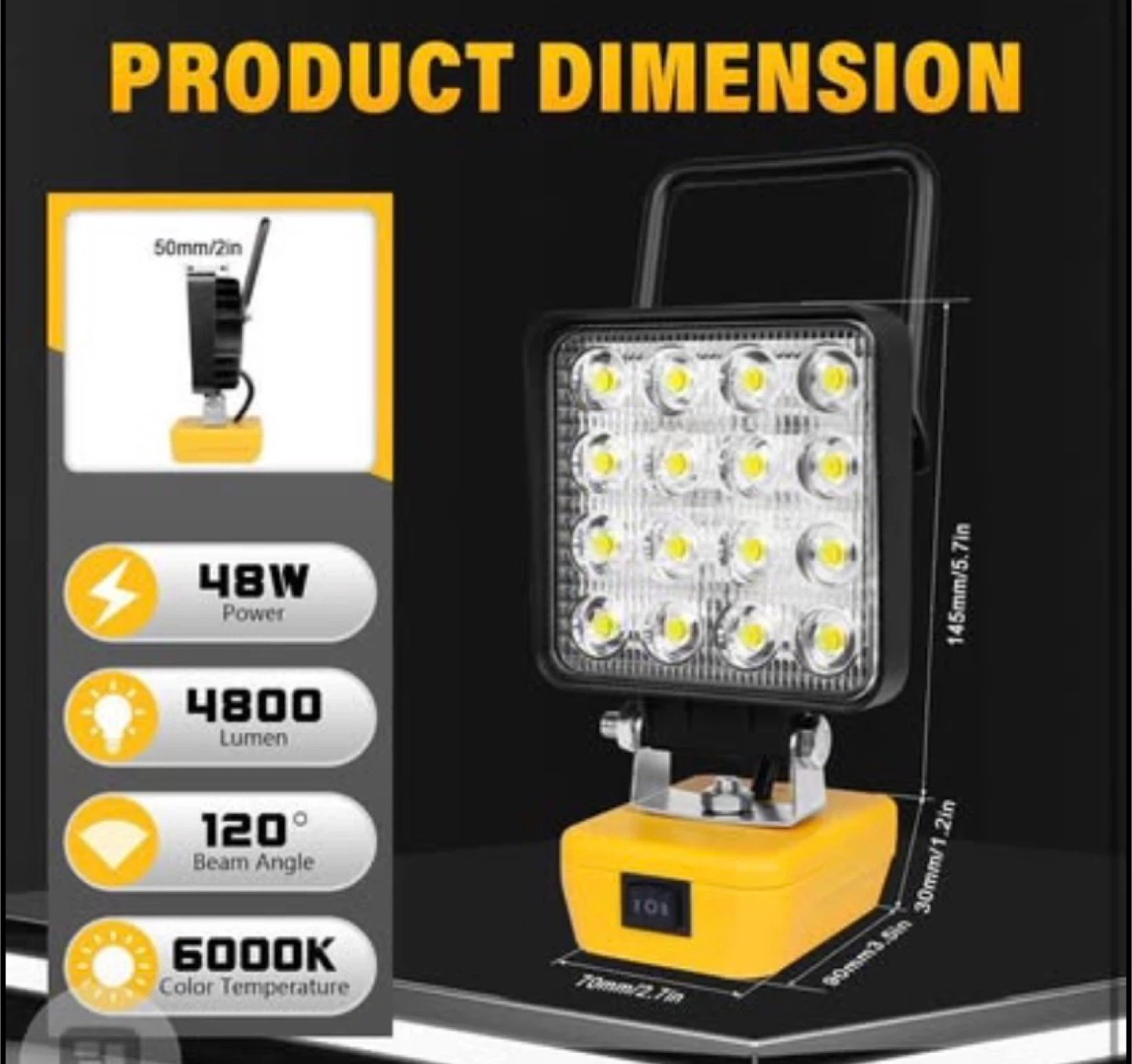 RIGIDON Cordless LED Work Light for Dewalt 18/20V Battery, 48W 4800LM Flashlight LED Flood Light with USB and Type C Charging Port Portable Outdoors Job Site Light(Without Battery)