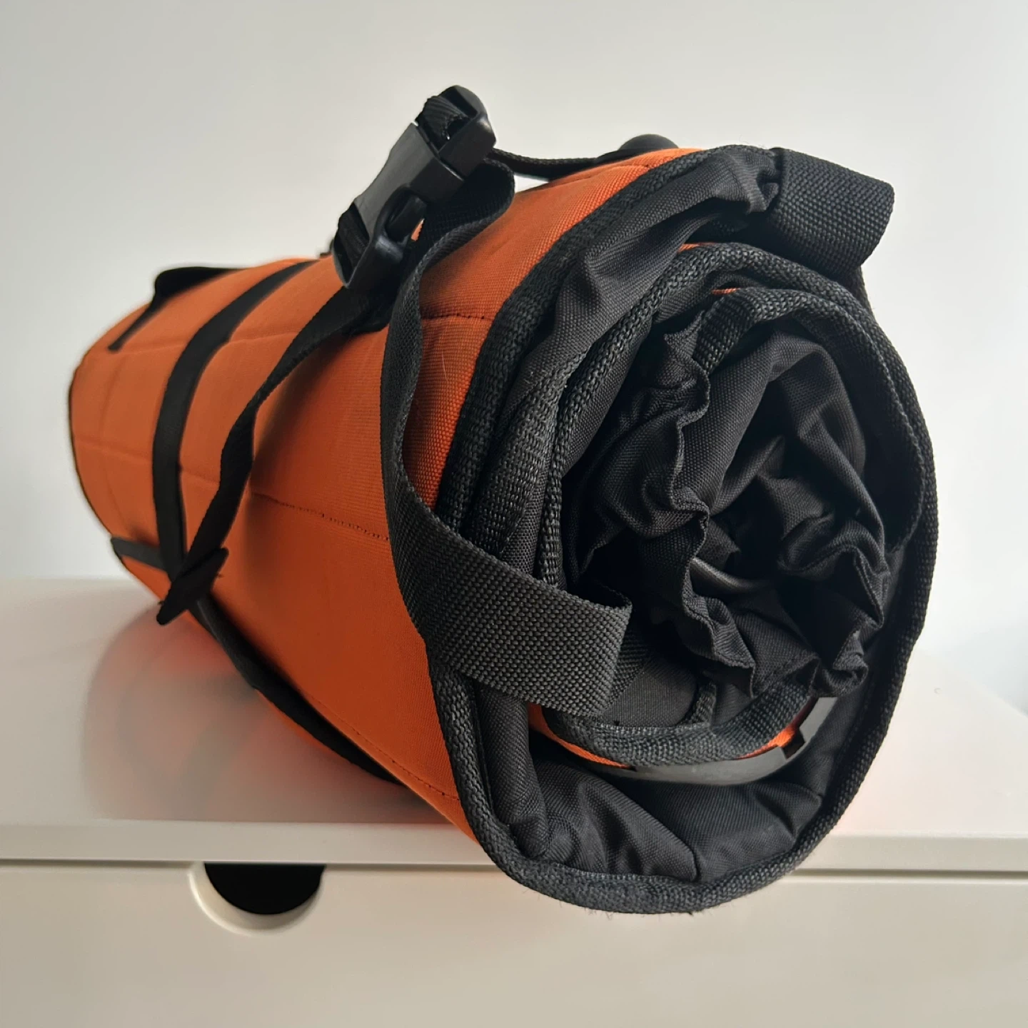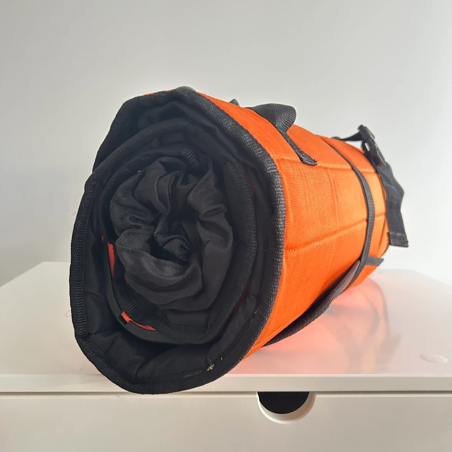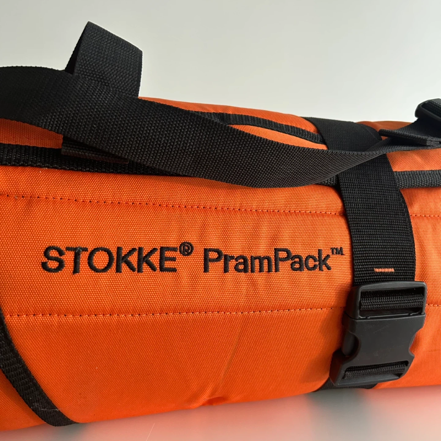 Stokke PramPack travel bag for your stroller. Bright orange colour. It's durable and protects your pram during travel.
