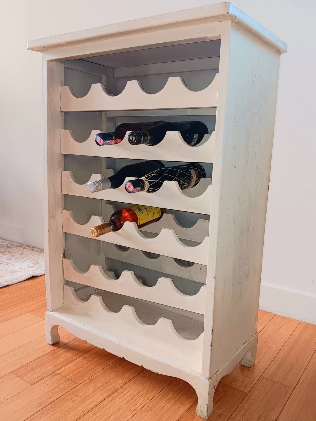 Vintage Wooden Wine Rack Cabinet with Decorative Tile Top