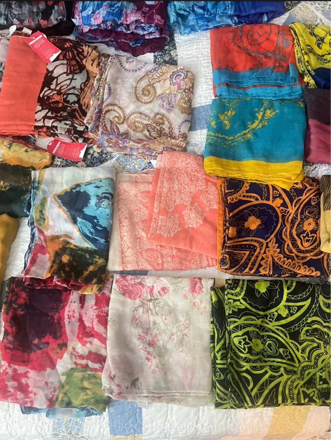 Selling a collection of scarves in various colours and patterns. They're in great condition and ready to add some flair to your wardrobe!