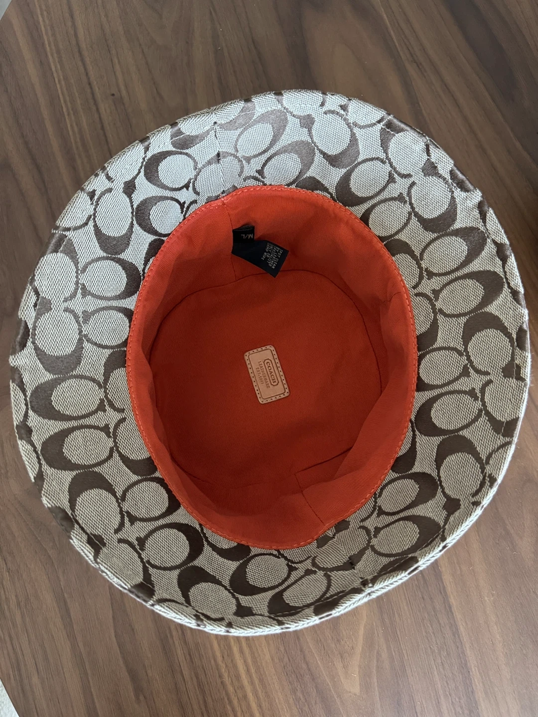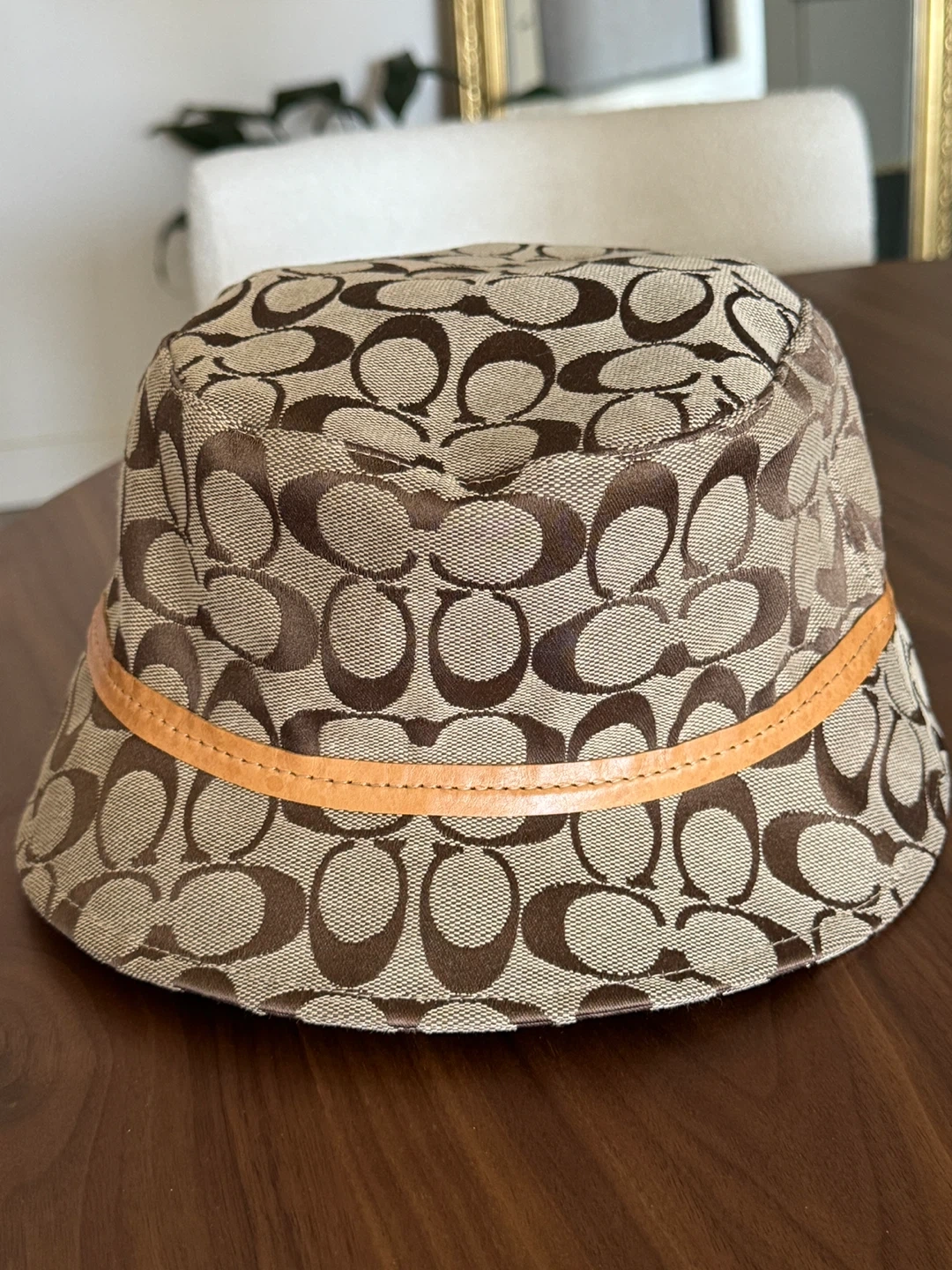 Authentic Classic Coach bucket hat with signature 'C' pattern.