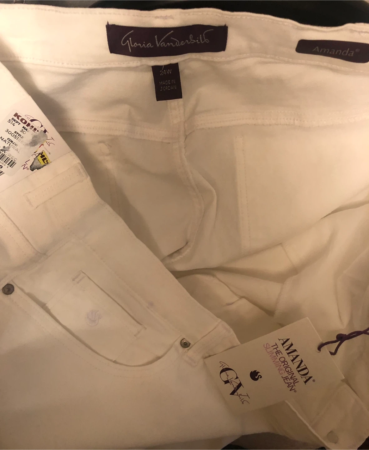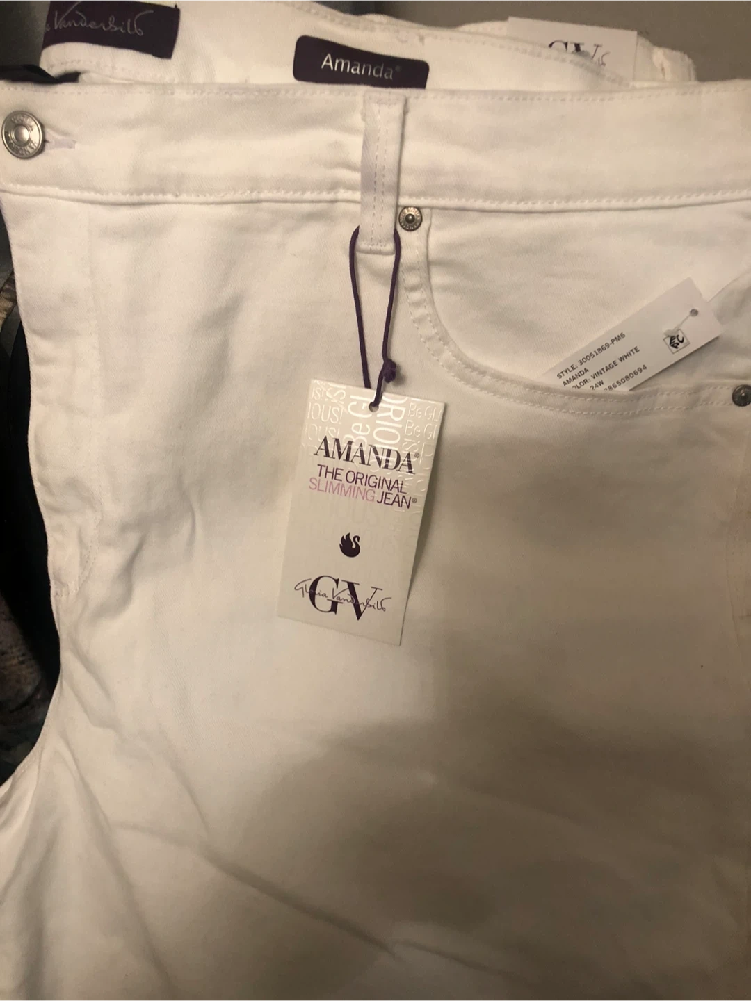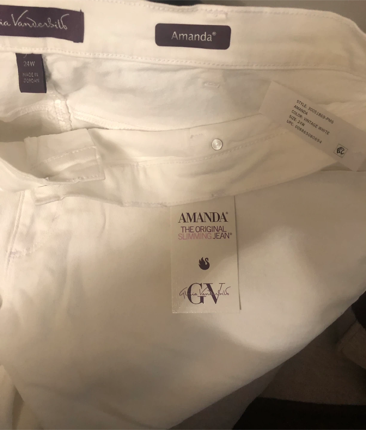 women's white Amanda slimming jeans. Style: AMANDA. Size 24W. Made in Jordan. These are the original slimming jeans.