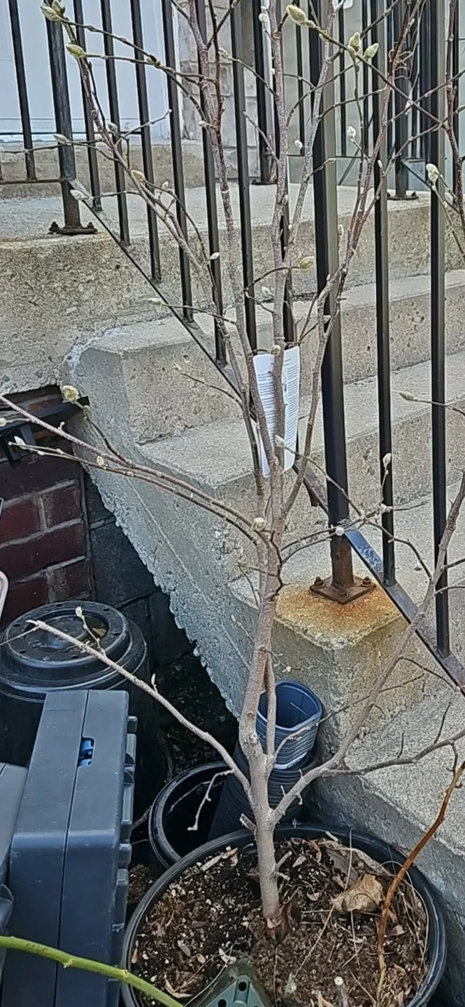 A lovely Star Magnolia tree with white blooms. It's ready to be planted in your garden. This tree blossoms beautifully in spring!