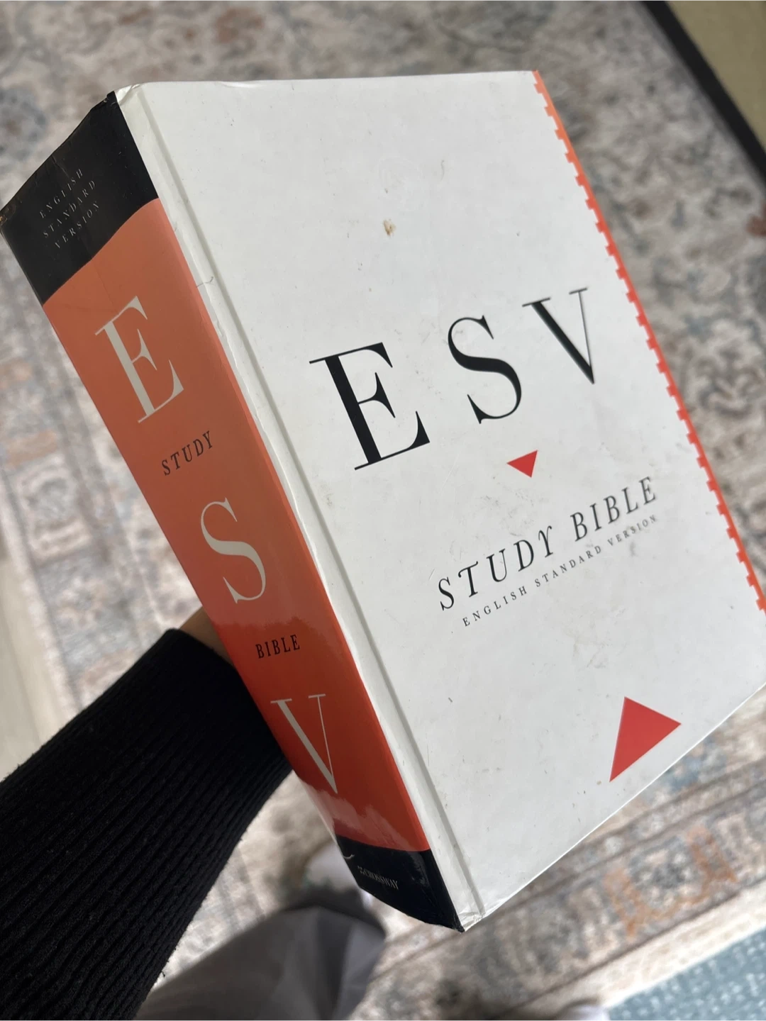 This is the ESV Study Bible in the English Standard Version. It's published by Crossway and includes comprehensive study notes. This Bible is excellent for in-depth study of scripture.