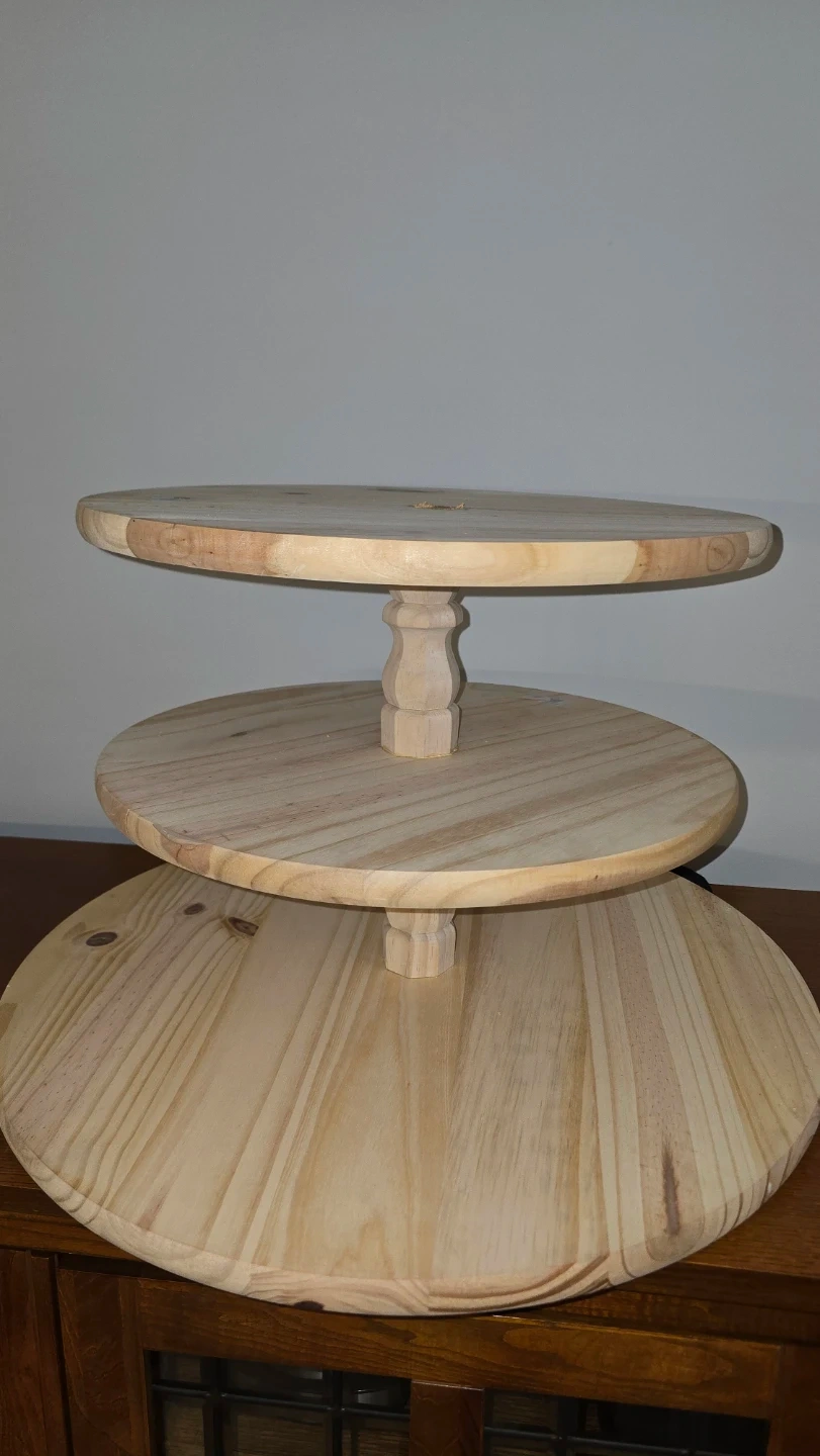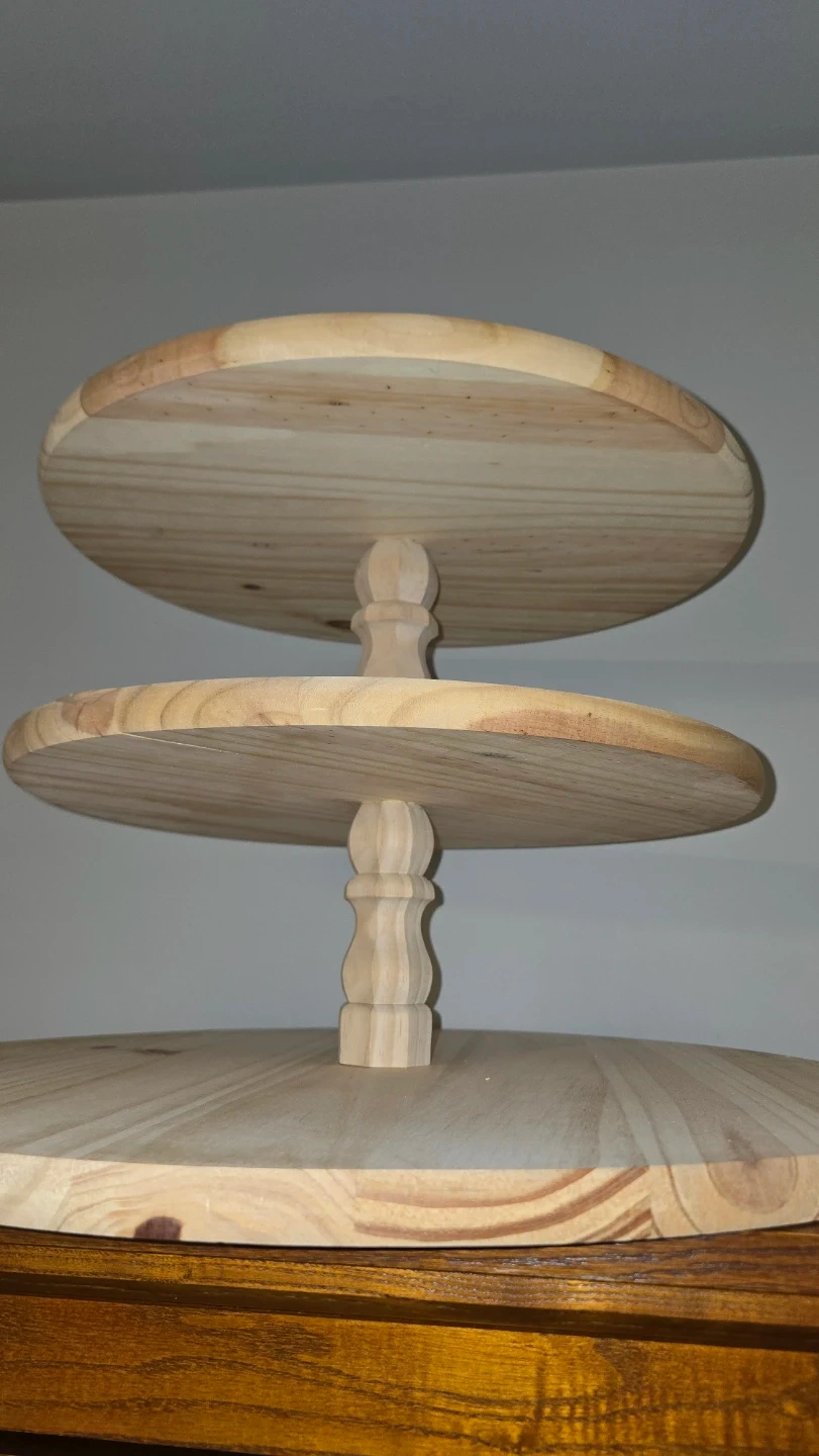 This 3-tier serving stand is made of natural wood. It's perfect for displaying desserts, cupcakes, or appetizers at parties and gatherings! The tiered design saves table space.