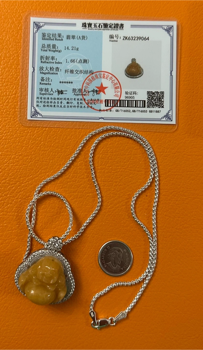 Golden Jade Buddha with 925 Silver Necklace