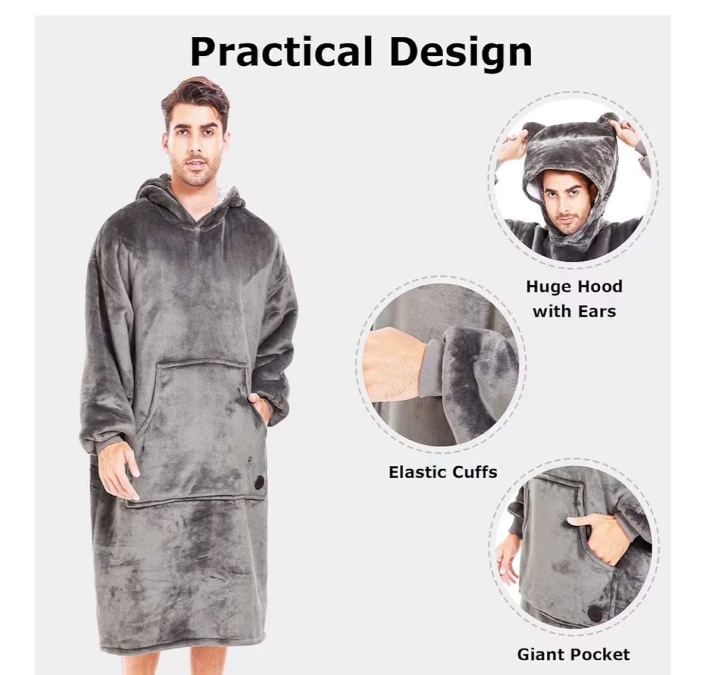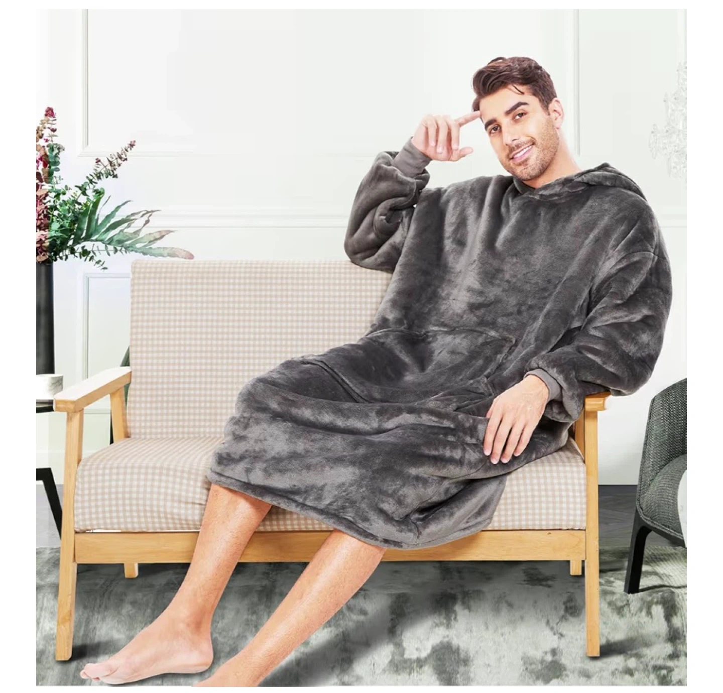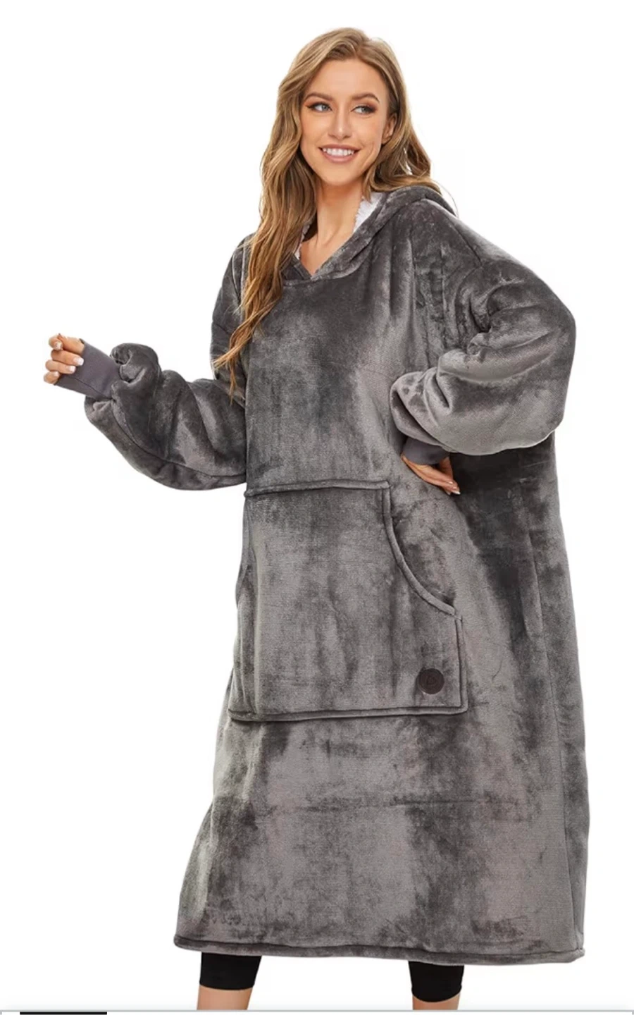 Super soft grey wearable blanket hoodie. It's made from plush material and has a large front pocket. Perfect for staying cozy on chilly days! Pickup/ cash only. SE Vancouver. Victoria Drive & E 61 Ave.