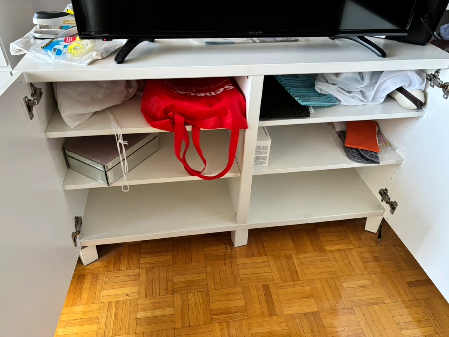 Selling a white IKEA TV stand/storage unit. It's in great shape and perfect for organizing your living room! Pick up only.