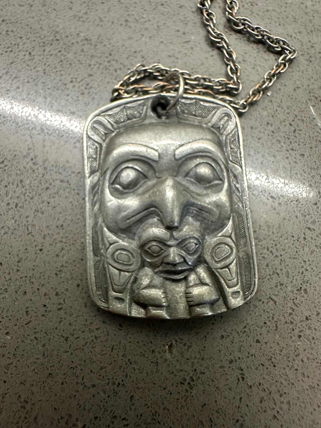 A beautiful vintage Haida pewter pendant necklace. Eagle protecting man. 30yrs old from B.c