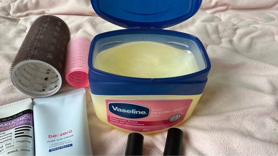 Mixed beauty bundle! Includes skincare, hair stuff, and makeup. Comes with a big tub of Vaseline Baby Healing Jelly, Dermafactory Bakuchiol Spicule Cream for firming and moisturizing, and be:zero Pure Sun Cream SPF42 PA+++. Also has a Banila Co compact, two nail polishes (Layer Ling and Basic), a big bag of cotton pads, and two hair rollers. Everything is full or mostly full. Expiration dates on creams are 2027. All in great shape. Most items are from Korea (except Vaseline). Located near Yonge Sheppard Centre. Cash only.