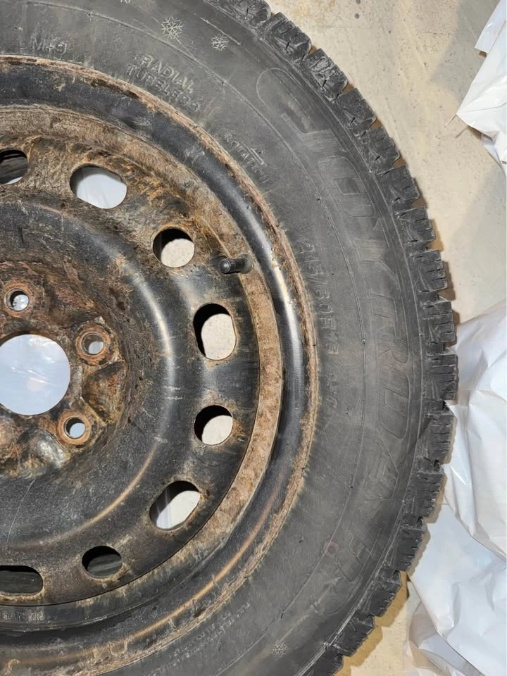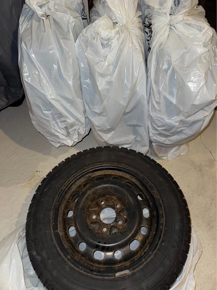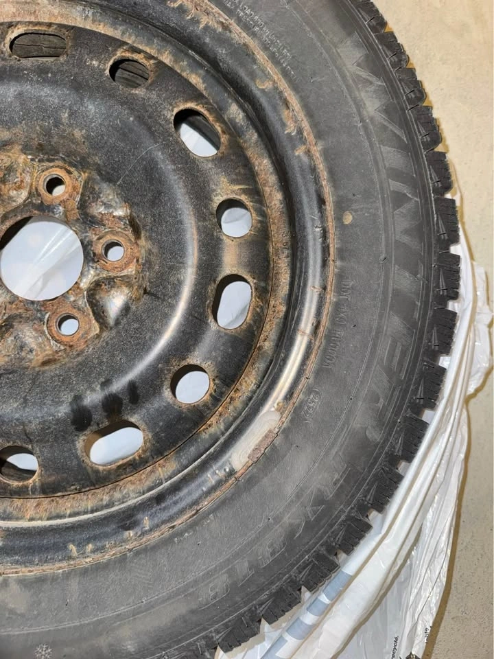 Selling as is, a set of winter tires purchased in 2023/2022 winter for sale, fair condition, two of the steel rims a but warped but the rubberis in good conditions and my assumption that they can last fir the next 2-3 years.