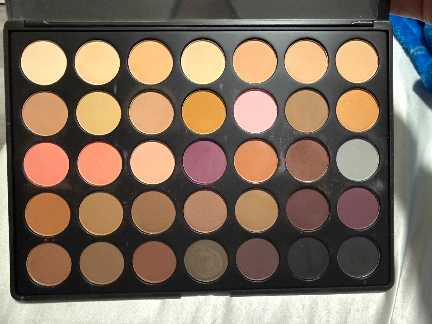 This Morphe 35N eyeshadow palette has 35 shades. It's a neutral palette with a variety of matte and shimmer finishes. This palette is great for creating everyday looks or more dramatic eye makeup!