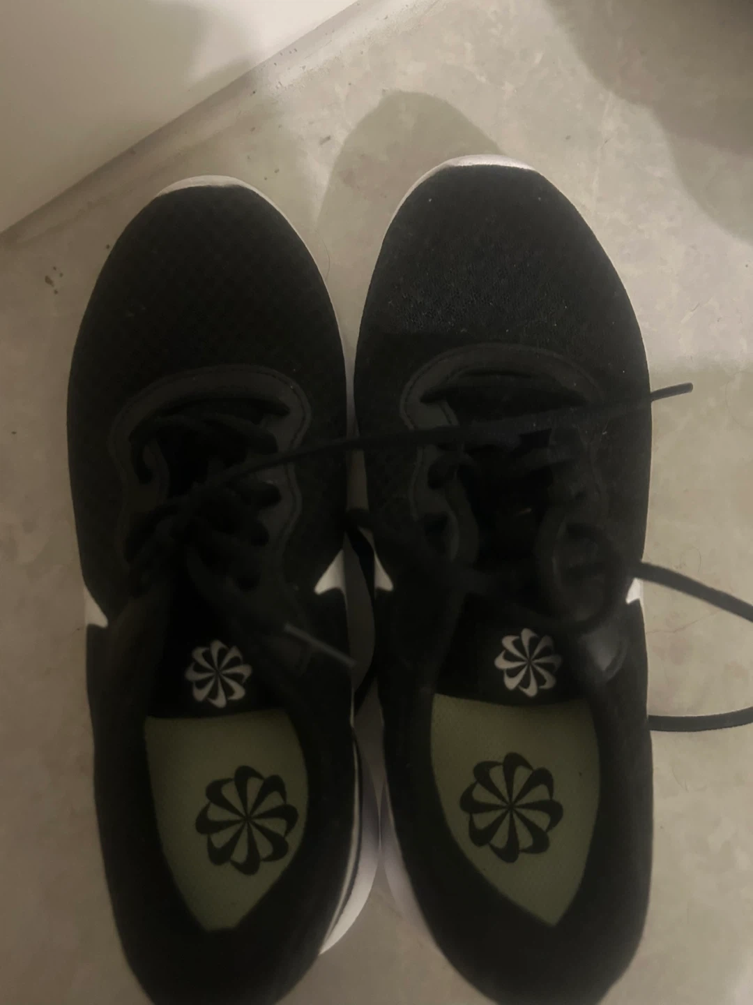 NEW. These are black Nike running shoes. They feature a breathable mesh upper and a cushioned sole. Lace-up closure for a secure fit.