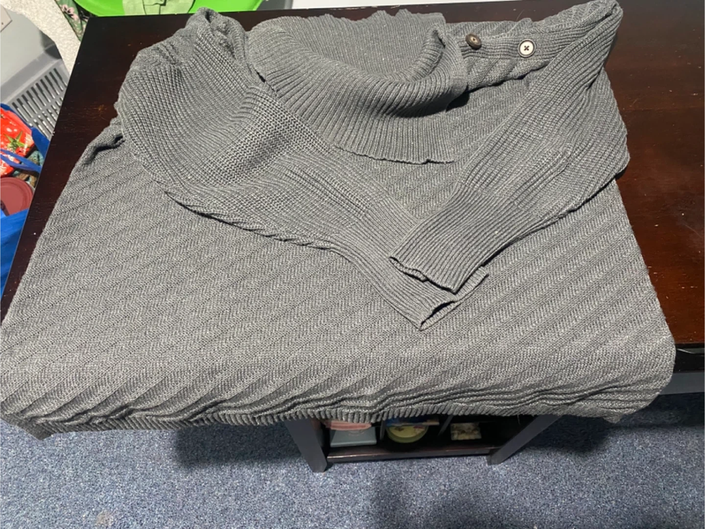 (Don’t know why in the 2nd picture sweater looks light grey but item is dark)