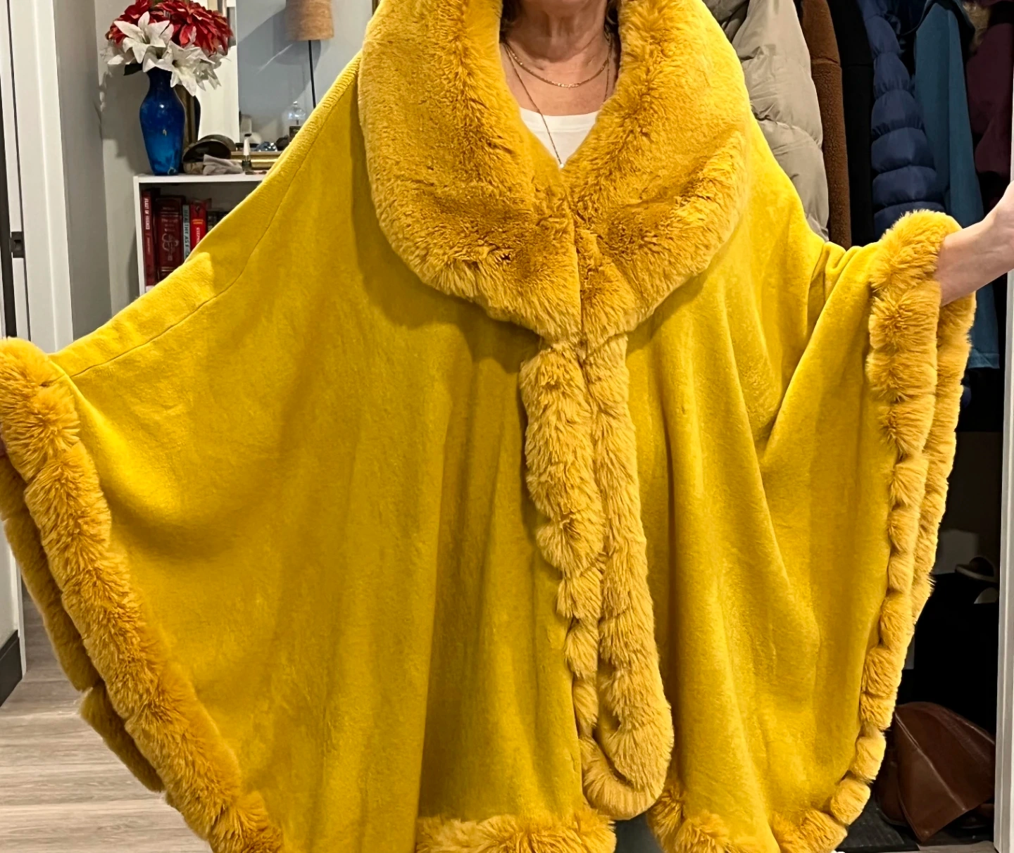 Vintage Yellow Faux Fur Trim Ladies Cape