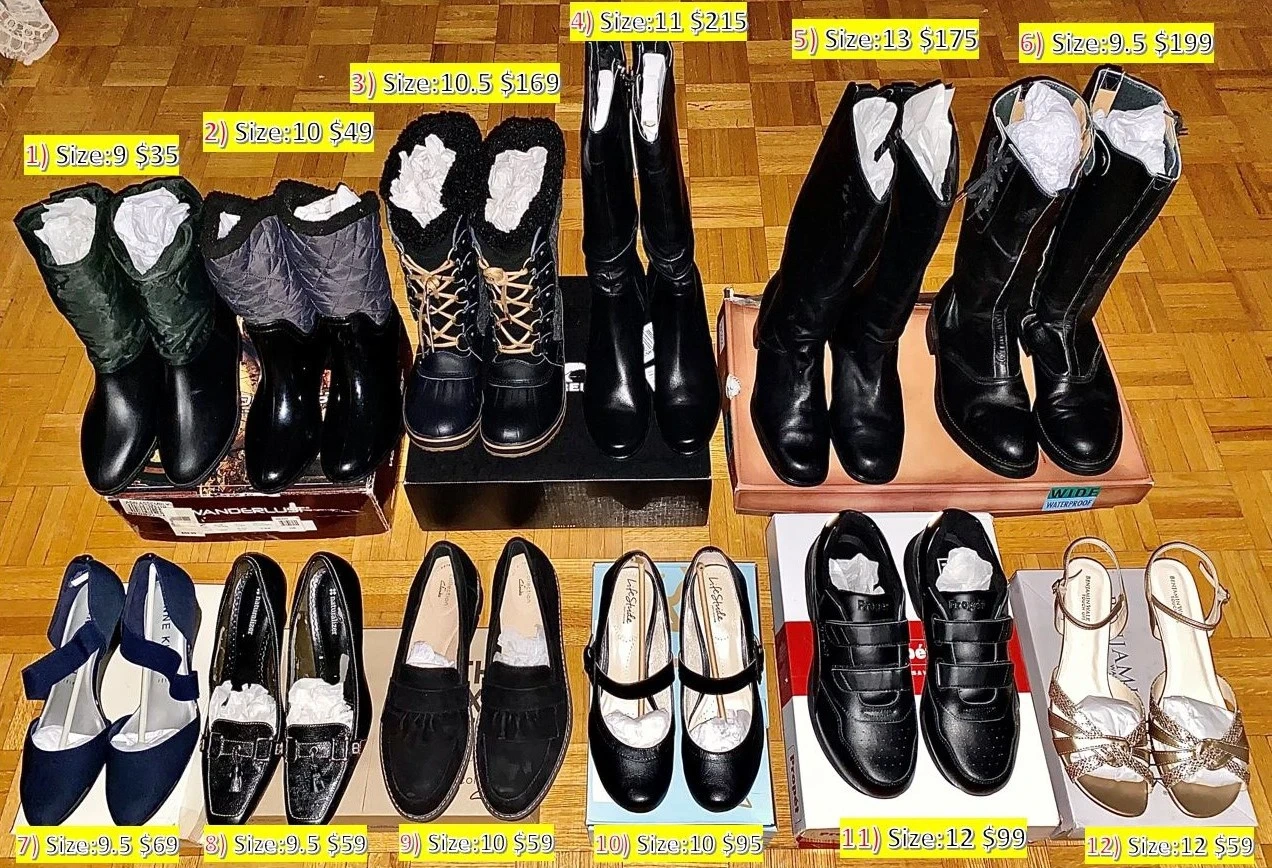 Boots and Shoes for Women. Sizes: 9 – 13.