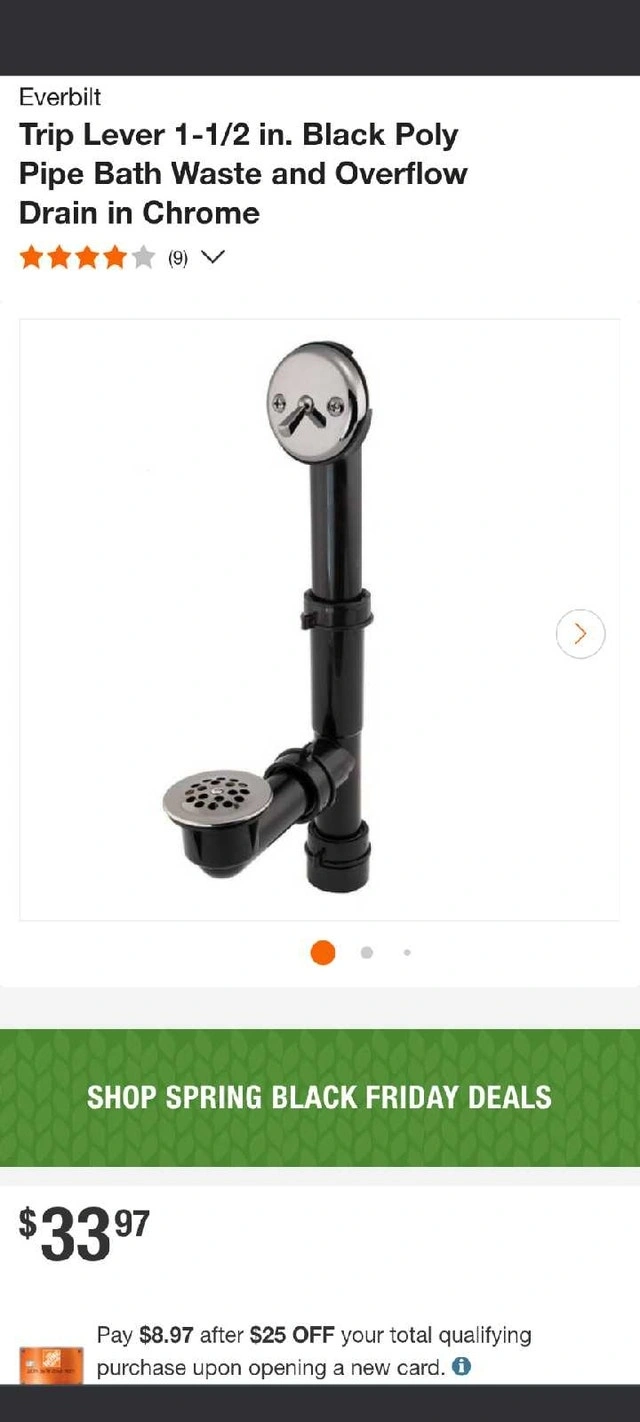 Selling a brand new Everbilt trip lever 1-1/2 inch black poly pipe bath waste and overflow drain in chrome, perfect for your bathroom plumbing needs. Specifications: