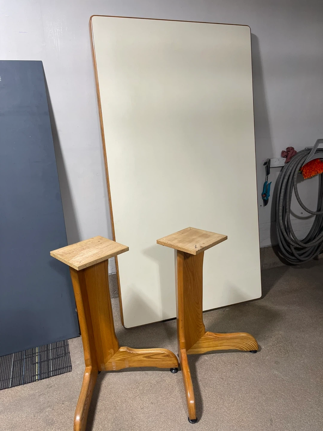 Table Top and Two Wood Pedestal Bases