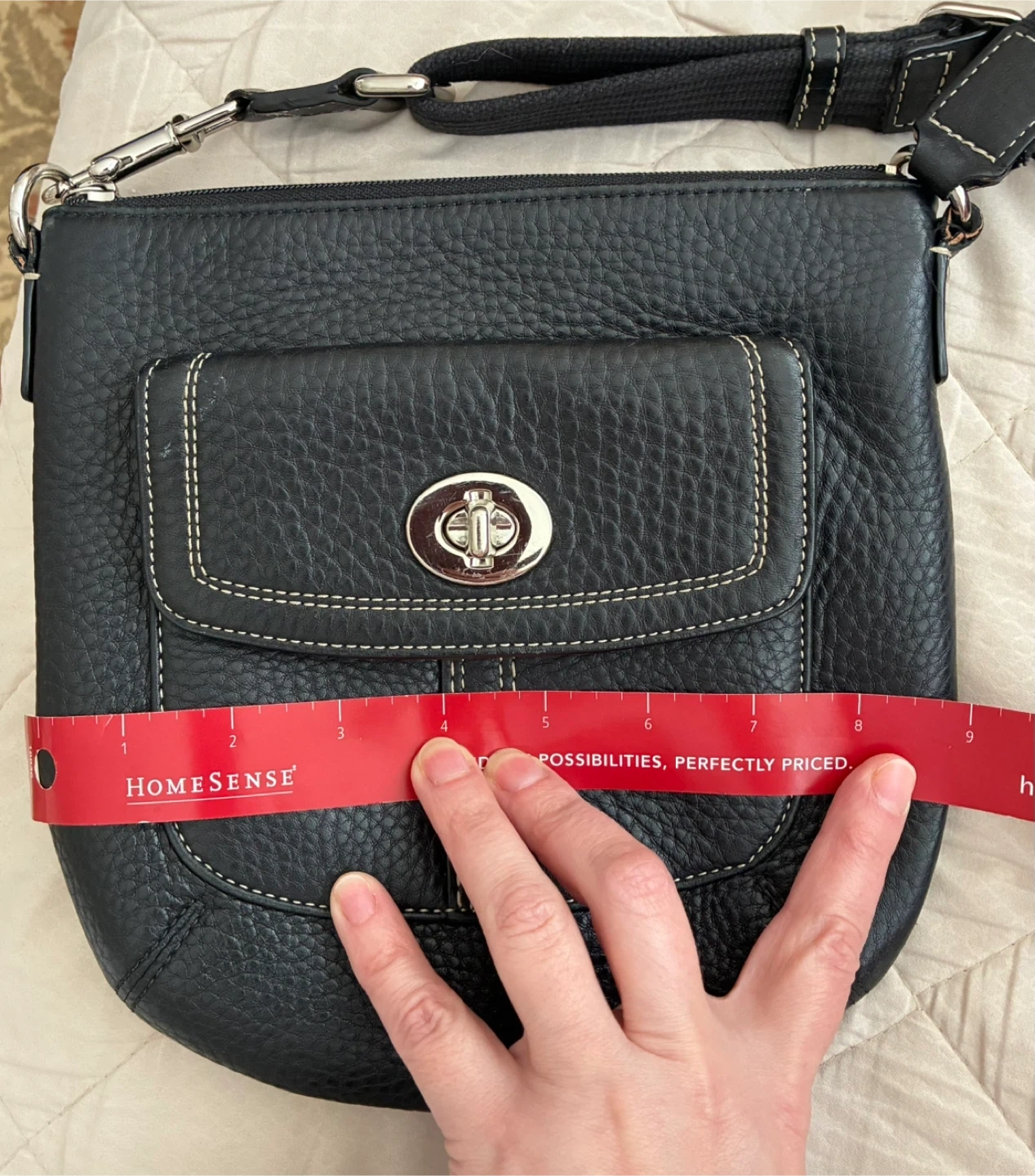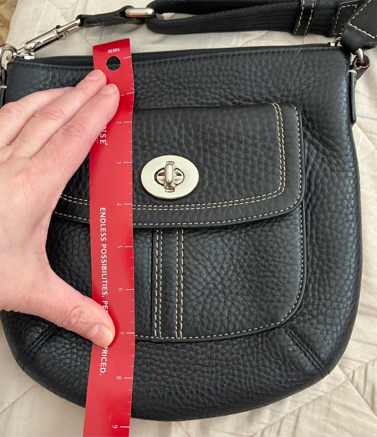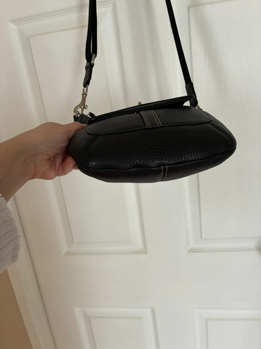 Black pebbled leather crossbody purse.