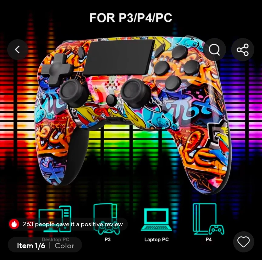 This controller has a unique 'Live Now' graphic design. It features standard PS4 button layout and a wired connection. It's perfect for anyone wanting a personalized gaming experience.