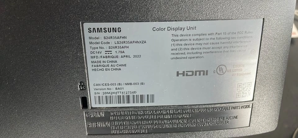 Samsung S24R35AFHN - SR35 Series LED monitor. 24" (23.8" viewable) with 1920 x 1080 Full HD resolution. Used, not brand new.