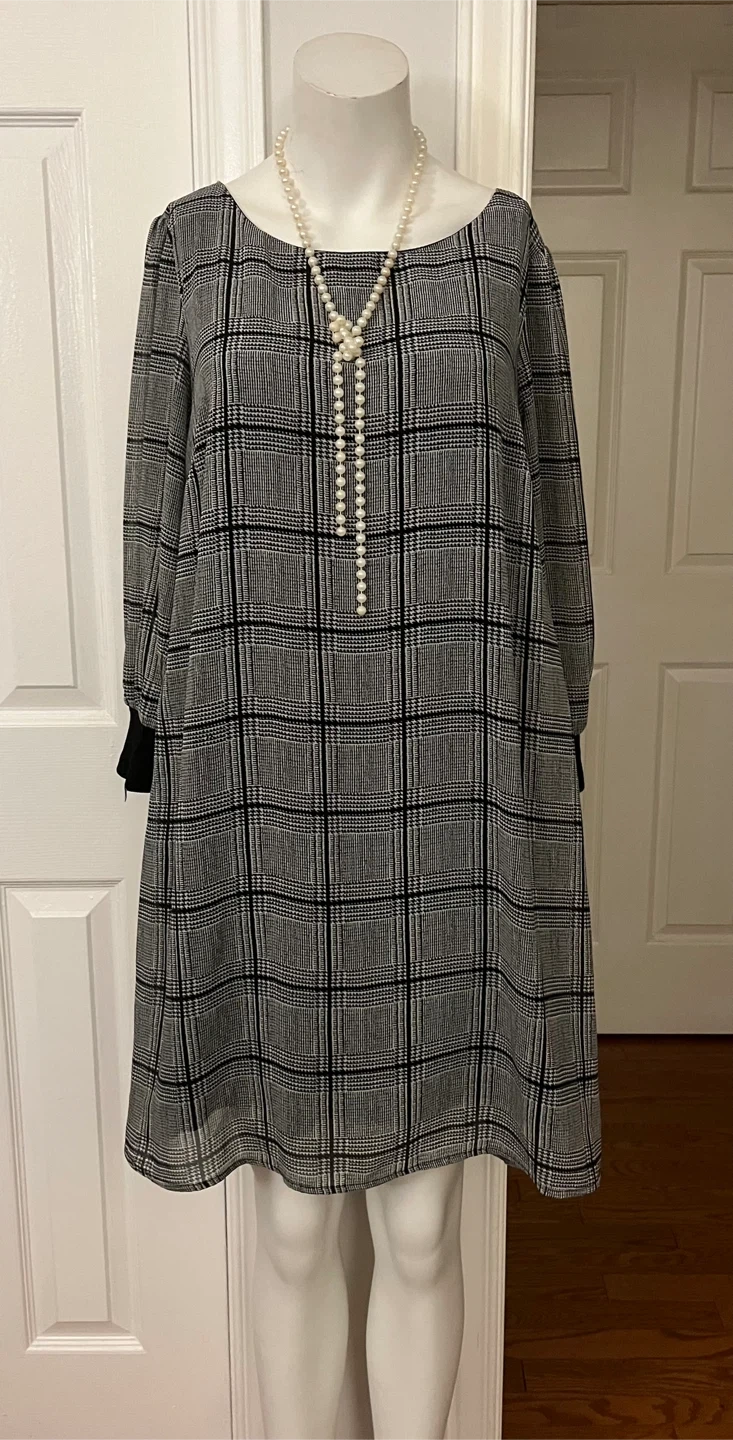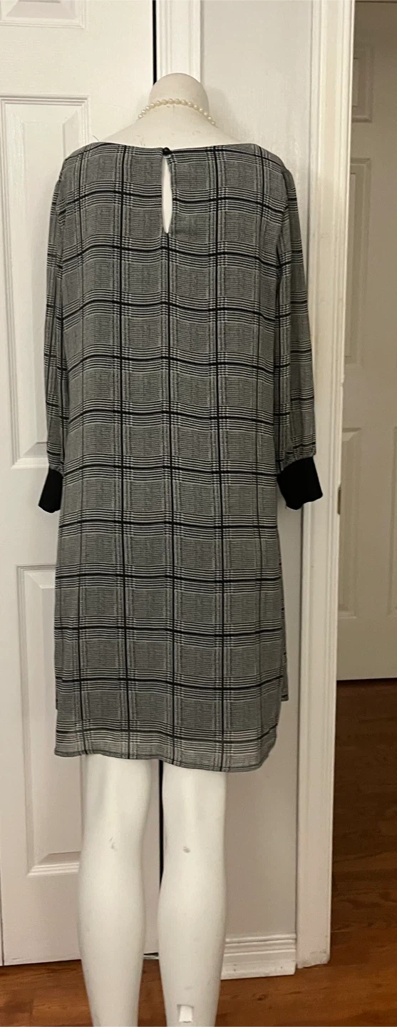 Luxology Plaid Long Sleeve Shift Dress Size 8