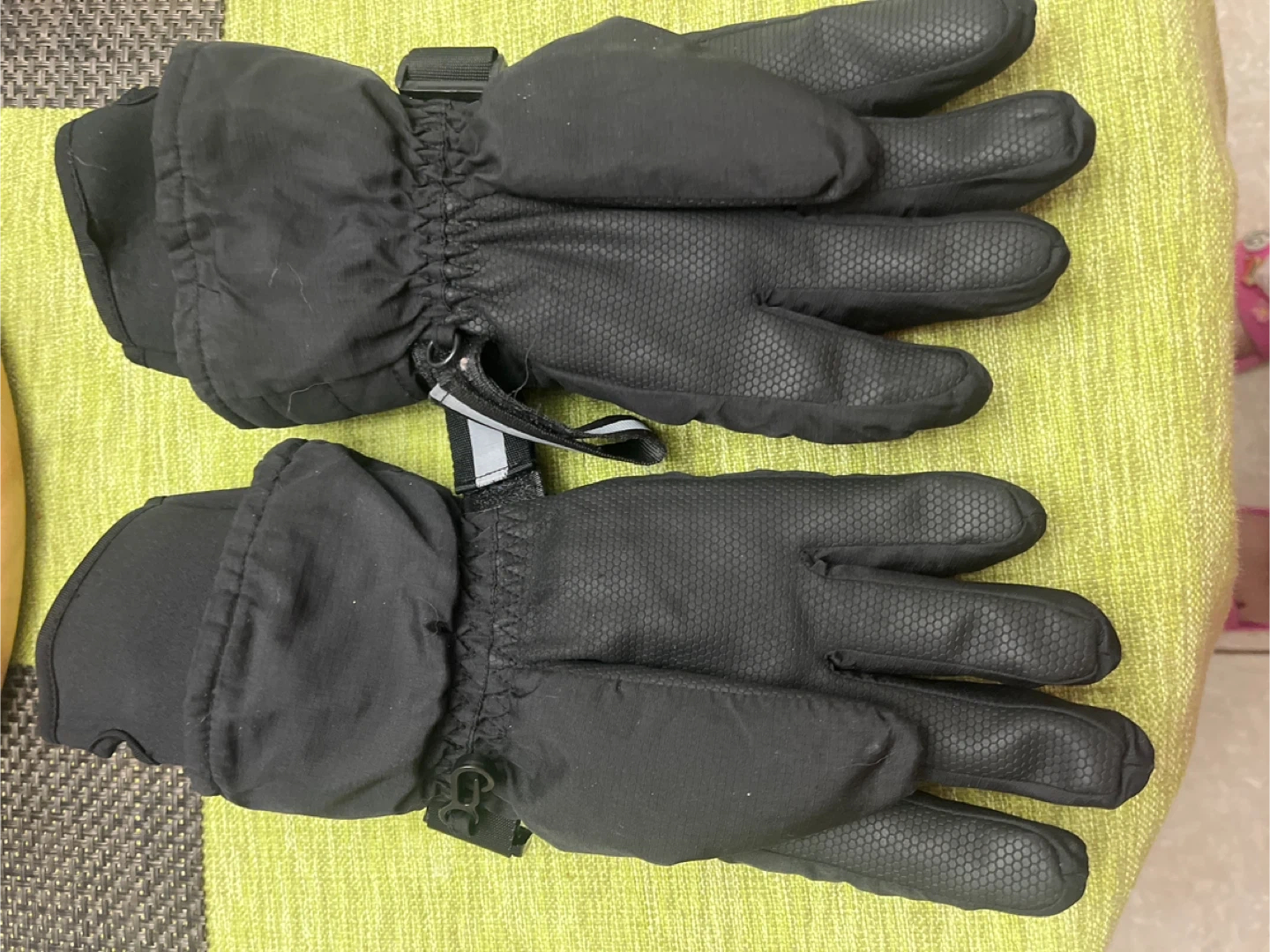 Black winter gloves from Swiss Tech. Padded and insulated for warmth. Features a grippy palm and adjustable wrist strap. Perfect for cold weather activities!